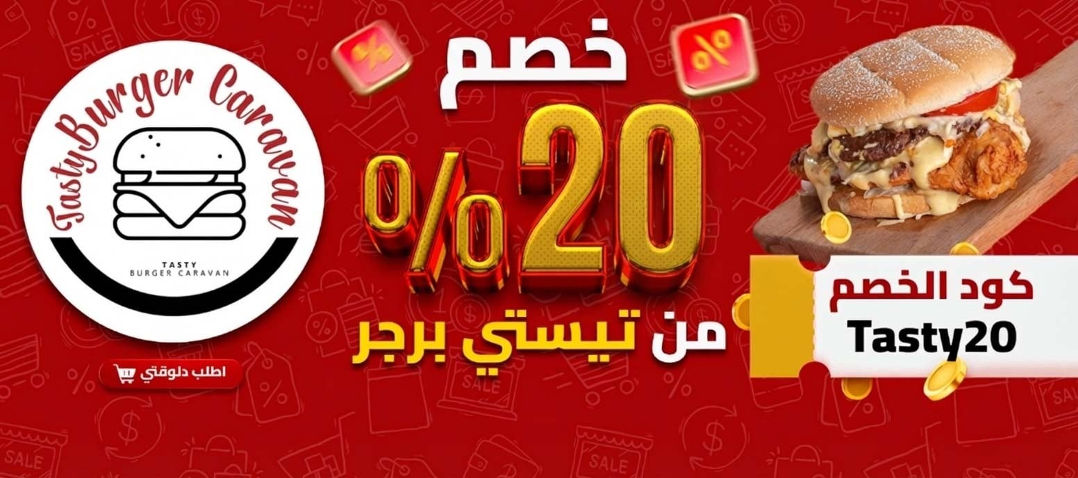 خصم 20% على المنيو كله من #تيستي_برجر 🍔 فـ #شبين ع أبلكيشن #سيتي_اب 📱 لما تستخدم كود الخصم "Tasty20" 🎁 برجر بطعم مميز يخليك تحب البرجر أكتر 😋 اختار البرجر اللي على مزاجك واستمتع بأحلى طعم ✨