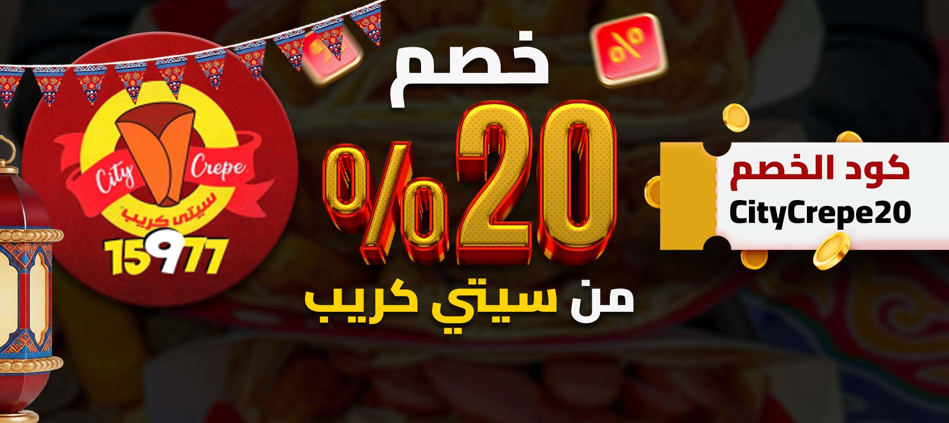 خصم 20% على المنيو كله من #سيتي_كريب 🎉 لما تستخدم كود الخصم CityCrepe20 🎁 كريبات تسد معاك في الفطار والسحور 🔥 كل حشوة معمول حسابها صح وكل لقمة أحلى من اللي قبلها 😋 استمتع بالطعم والخصم في نفس الوقت ✨