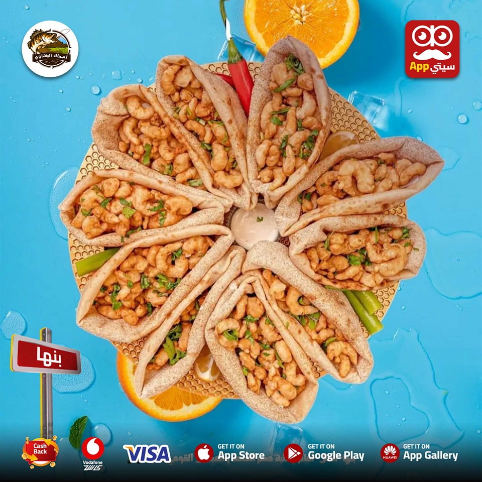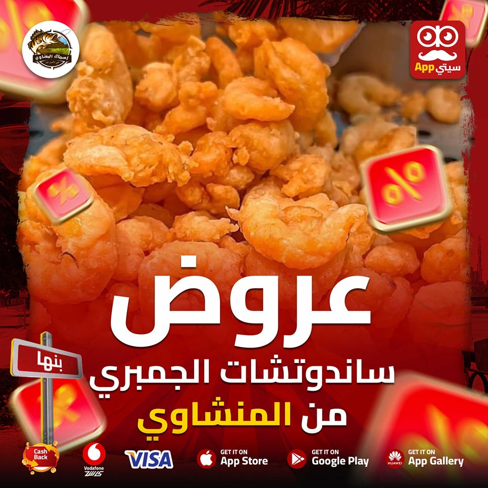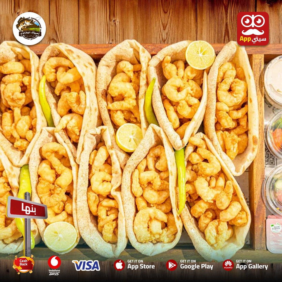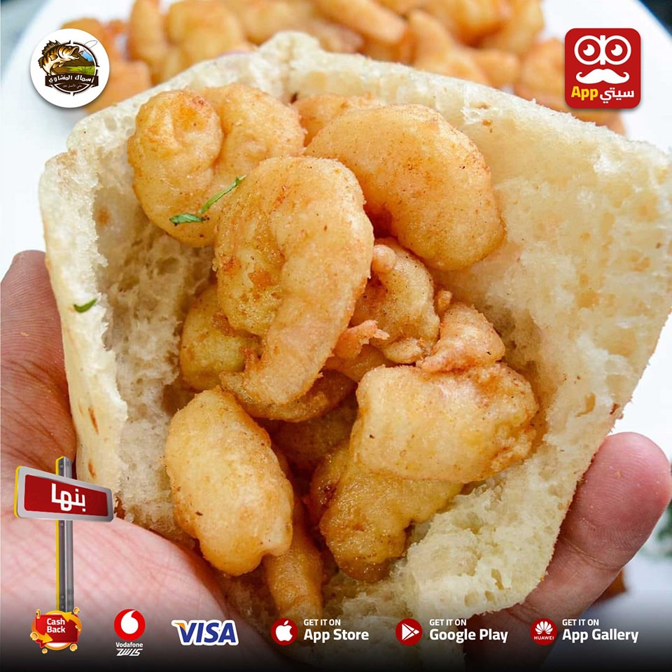 #عرض_الجمبرى من #اسماك_المنشاوى رجع تانى 🥳🥳 5 ساندوتشات جمبري ب 100جنيه 🍤 10سانوتشات جمبرى ب 200جنيه 😋 اطلب #اونلاين من الابلكيشن 📱 و هيرجعلك فلوس كاش باك لرصيدك في المحفظه على الابلكيشن 💵💰 تطلب بيهم بعد كده 😉 وكمان تقدر تدفع بفيزا 💳 او فودافون كاش او اي محفظة 🤩 تيك اواي & دليفيري وبنوصل كمان لاي مكان داخل و خارج #بنها 😉
