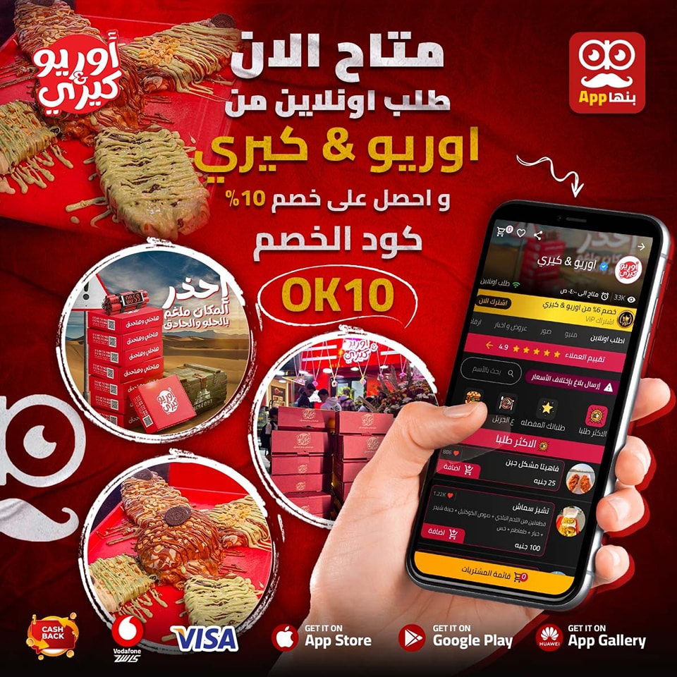 #اوريو_اند_كيري بقا موجود معانا #اونلاين على ابلكيشن #بنها App🤯♥️🔥 وخصم 10% بمناسبة الافتتاح لما تستخدم كود "OK10"🥳 ساندوتشات حلو وحادق ،عالجريل و برجر سماش و تشيكن و حلو وميكساته🤩🍔🌭 مزاجك هو الي يختار و #اوريو_اند_كيري هو الي ينفذ👌🏻✨ اطلب #اونلاين من الابلكيشن 📱 و هيرجعلك فلوس كاش باك لرصيدك في المحفظه على الابلكيشن 💵💰 تطلب بيهم بعد كده 😉 وكمان تقدر تدفع بفيزا 💳 او فودافون كاش او اي محفظة 🤩 تيك اواي & دليفيري وبنوصل كمان لاي مكان داخل و خارج