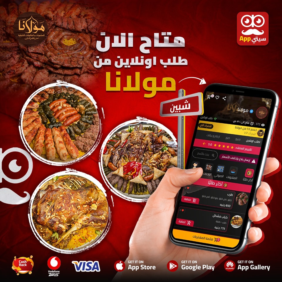 #مولانا بقا موجود معانا #اونلاين على ابلكيشن #سيتي_App في #شبين🤩♥️✨ منيو غرقان مشويات بانواعها كفتة و طرب و شيش ونيفة وريش وفراخ.. ، ووجبات وطواجن و فتة ومحاشي وساندوتشات...😋🍖🍗🌭🍲 #مولانا رحلة لاكتشاف المذاق الفريد في الاكل الشرقي الأصيل👌🏻😉 اطلب #اونلاين من الابلكيشن 📱 و هيرجعلك فلوس كاش باك لرصيدك في المحفظه على الابلكيشن 💵💰 تطلب بيهم بعد كده 😉 وكمان تقدر تدفع بفيزا 💳 او فودافون كاش او اي محفظة 🤩 تيك اواي & دليفيري وبنوصل كمان لاي مكان داخل و خارج #شبين 😉