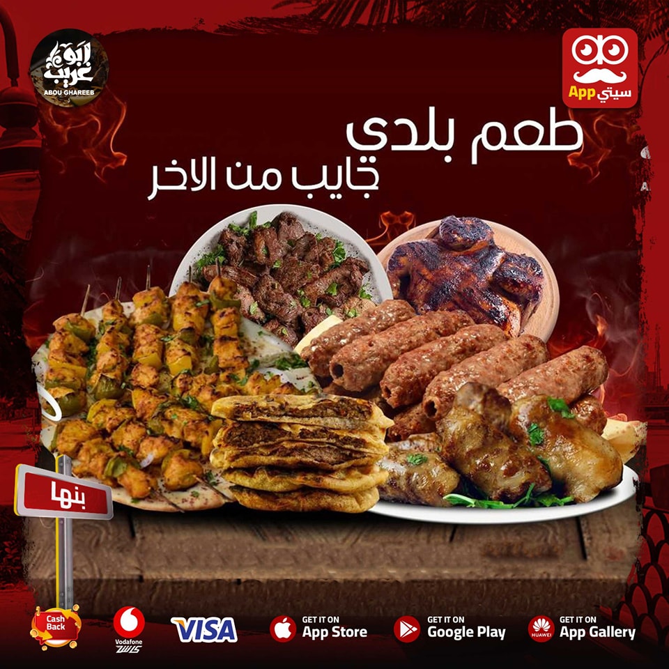 6️⃣ #عرووض من #ابو_غريب بتبدأ ب 110 ج بس ❗ ♥️ 🔥 🔸وجبه ربع كفته 110 ج 🔸وجبه ربع فرخه 110ج 🔸كيلو كفته ب 320 ج 🔸كيلو طرب ب 500 ج 🔸كيلو شيش ب 500 ج 🔸كيلو كباب + ارز + طحينه + عيش ب 750 ج #عروض #ابو_غريب هتخليك تشبع مشاوي😎💪🏻 اطلب #اونلاين من الابلكيشن 📱 و هيرجعلك فلوس كاش باك لرصيدك في المحفظه على الابلكيشن 💵💰 تطلب بيهم بعد كده 😉 وكمان تقدر تدفع بفيزا 💳 او فودافون كاش او اي محفظة 🤩 تيك اواي & دليفيري وبنوصل كمان لاي مكان داخل و خارج #بنها 😉