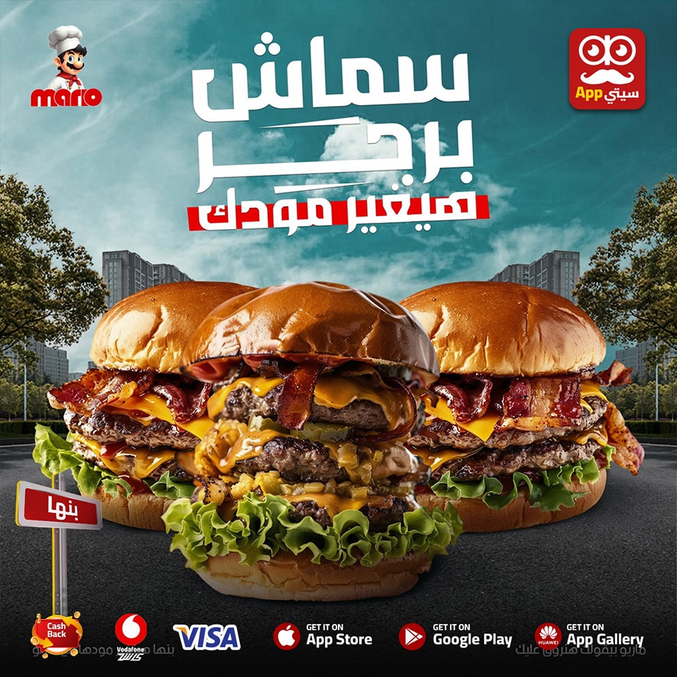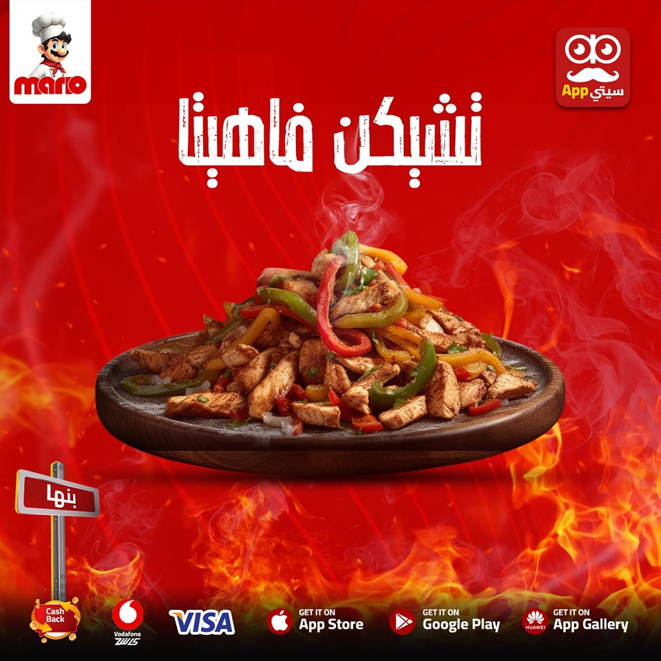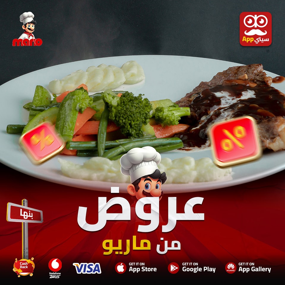 #عرووض الوجبات من #ماريو 🤩♥️💃🏿 ♦️بيف فاهيتا 225 بدلا من 250 ♦️بيف استراجنوف 225 بدلا من 250 ♦️تشكن ماريو 225 بدلا من 250 ♦️تشكن كانتري 200 بدلا من 220 ♦️فاهيتا فراخ 180 بدلا من 200 ♦️تشكن بيكاتا مشروم وايت صوص أو براون صوص ب200 بدل من 220 ♦️عرض كلاسيك سماش ومعاه فرايز وmc عامل 100 جنيه ⚠️جميع الوجبات تقدم مع 2 سايد من اختيارك ارز وفرايز أو ماش بوتيتو او خضار سوتيه ويمكن سايد 1 بدل الاتنين مكرونه وايت صوص أو ريد صوص👌🏻 الدلع عند #ماريو في الوجبات🤤🫶🏻 اطلب #اونلاين من الابلكيشن 📱 و هيرجعلك فلوس كاش باك لرصيدك في المحفظه على الابلكيشن 💵💰 تطلب بيهم بعد كده 😉 وكمان تقدر تدفع بفيزا 💳 او فودافون كاش او اي محفظة 🤩 تيك اواي & دليفيري وبنوصل كمان لاي مكان داخل و خارج #بنها