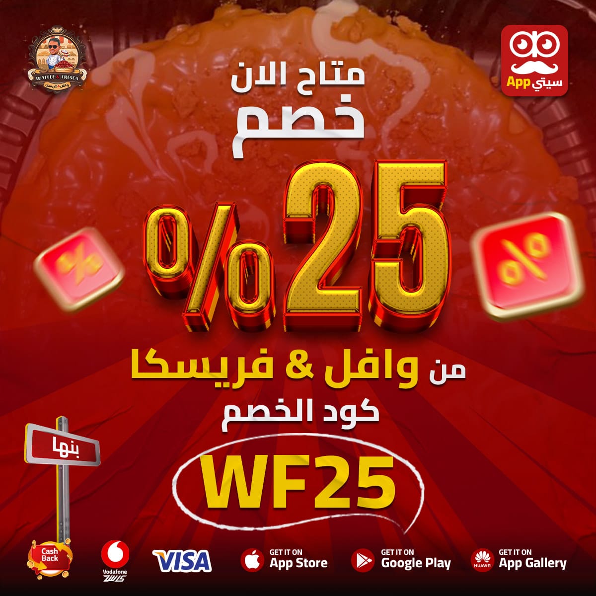 سنة عدت على أول فرع لينا وخصم خرج من قلبنا ليكم! بمناسبة عيد ميلاد #وافل&فريسكا🥳🥳 #خصم 25% على كل المنيو لمدة 5 أيام لما تستخدم كود*WF25*😍