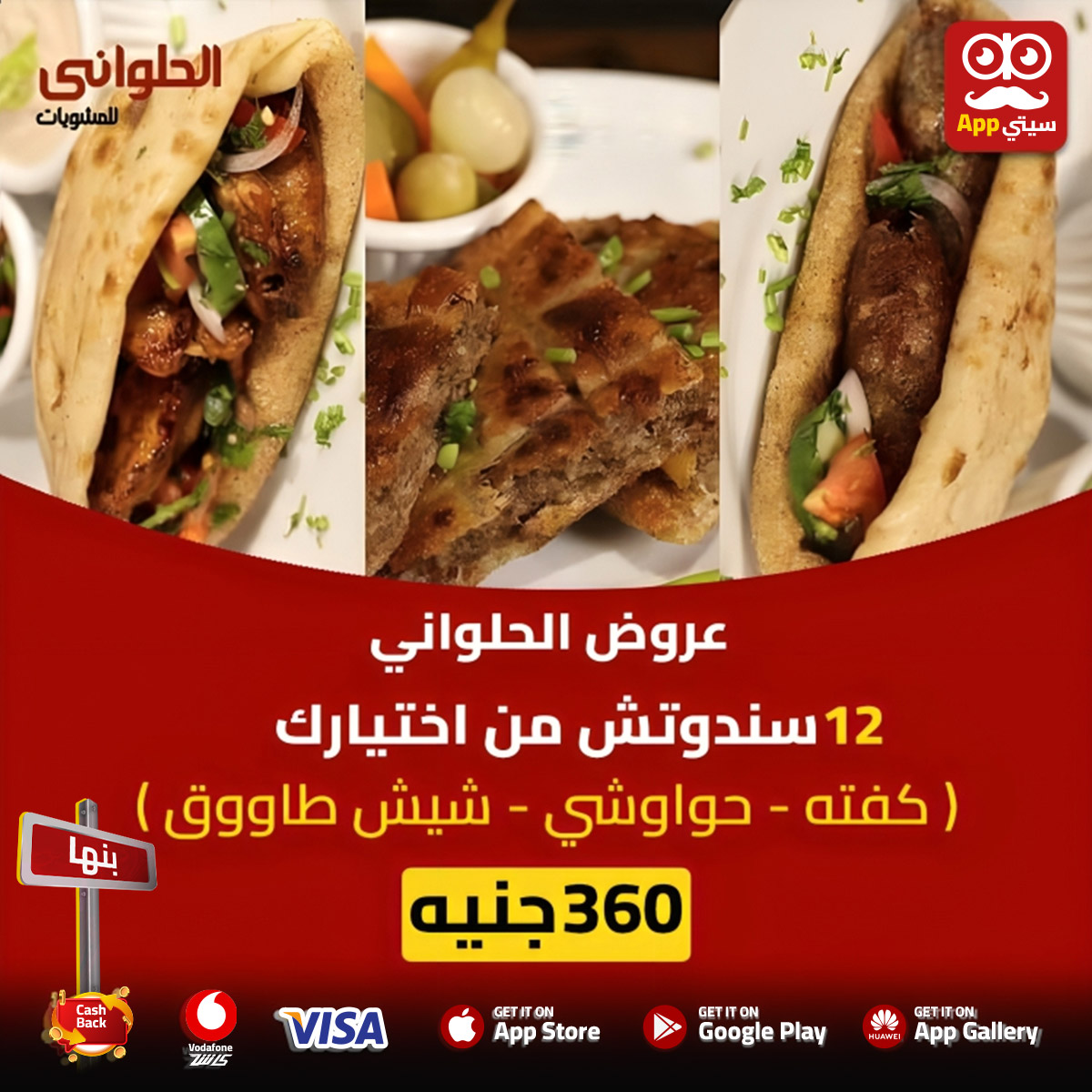 عروض السندوتشات من #مشويات_الحلواني هتحلي وتكمل اللمة👌🏻😍 ▪️العرض الاول 4 سندوتشات من اختيارك(كفتة - حواوشي - شيش طاووق) ب 120 جنيه🔥 ▫️العرض التاني 8 سندوتشات من اختيارك(كفتة - حواوشي - شيش طاووق) ب 240 جنيه🔥 ▪️العرض التالت 12 سندوتشات من اختيارك(كفتة - حواوشي - شيش طاووق) ب 360 جنيه 🔥 اللمة تحلى مع #مشويات_الحلواني 😍