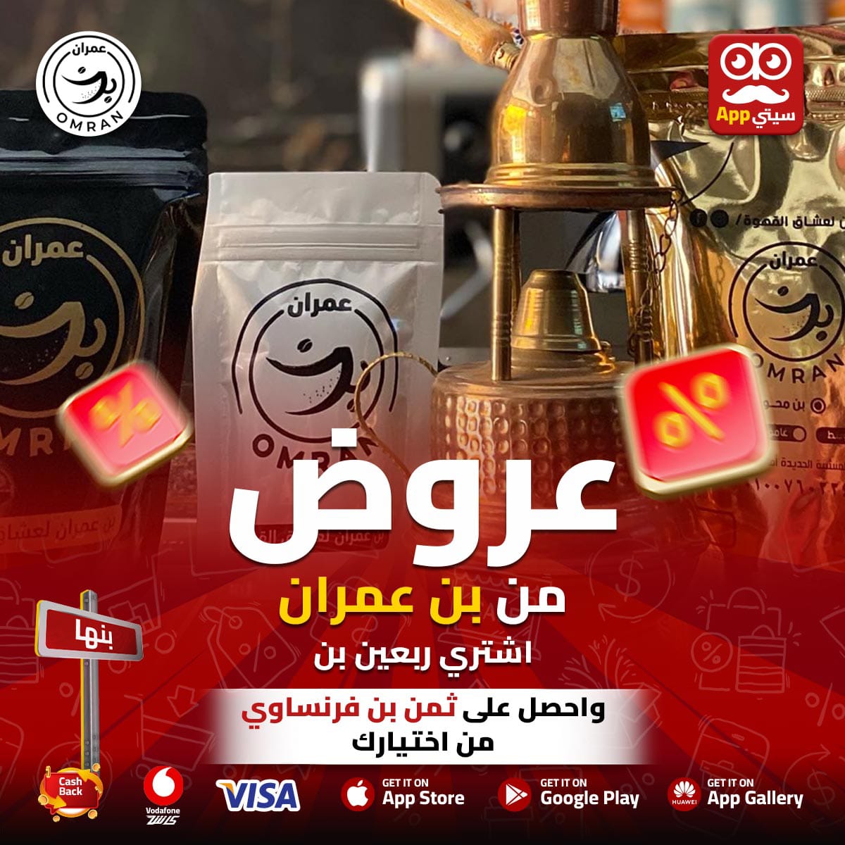 عروض من #بن_عمران 🔥 اشتري ربعين بن هتاخد عليهم تمن بن فرنساوي من اختيارك 🤩👌🏻 هتلاقي عندهم جميع انواع البن تركي و فرنساوي و ساده بتحويجات تظبط المزاج😋☕ #بن_عمران بن مظبوط يظبط كيفك 😍