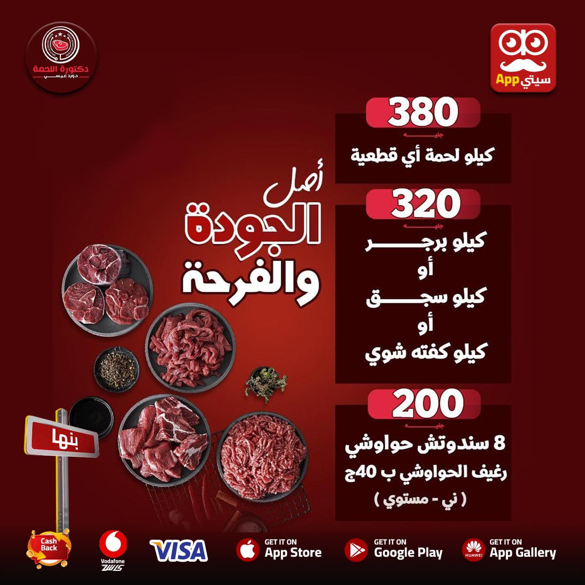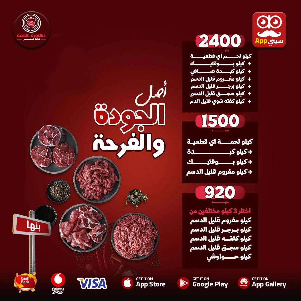عروض عيد الاضحى من #دكتورة_اللحمة😍❤️ سعر كيلو أي قطعيه لحمه من إختيارك ب٣٨٠ ج سعر كيلو مفروم او برجر او سجق او كفته شوي ب٣٢٠ ج ٤ ارغفه حواوشي ني او مستوي ب١٠٠ ج كفته ارز ٢٨٠ كارع ٣٨٠ كبده بلدي صافي ٣٨٠ _______ باكيدجات التوفير🥰 لو خدت ٣ كيلو من أصناف مختلفه سواء (سجق قليل الدسم او مفروم قليل الدسم او حواوشي متبل او برجر قليل الدسم او كفته شوي قليل الدسم ) ب ٩٢٠ يعني الكيلو ب٣٠٠ جنيه داخل الباكيدج 🥰 ___ كيلو بفتيك +كيلو كبده بلدي +كيلو مفروم قليل الدسم + كيلو لحم اي قطعيه من اختيارك ب١٥٠٠ج ———- ٧ كيلو ب٢٤٠٠ ج كيلو مفروم قليل الدسم كيلو كبده بلدي صافي كيلو برجر قليل الدسم كيلو سجق قليل الدسم كيلو بفتيك كيلو لحمه اي قطعيه من إختيارك كيلو كفته قليله الدسم كل دا ب٢٤٠٠ جنيه