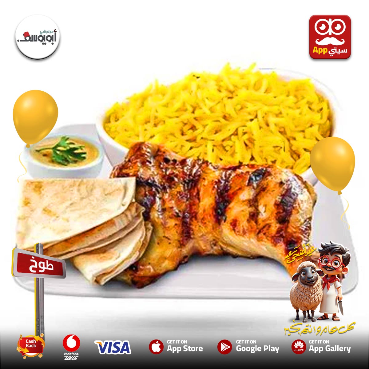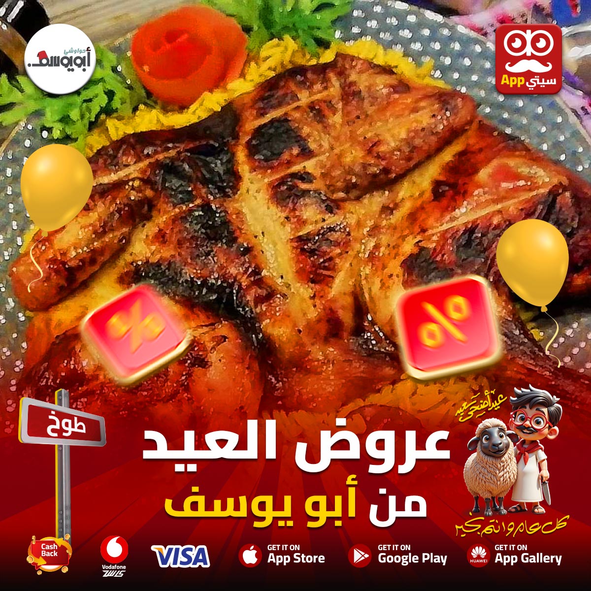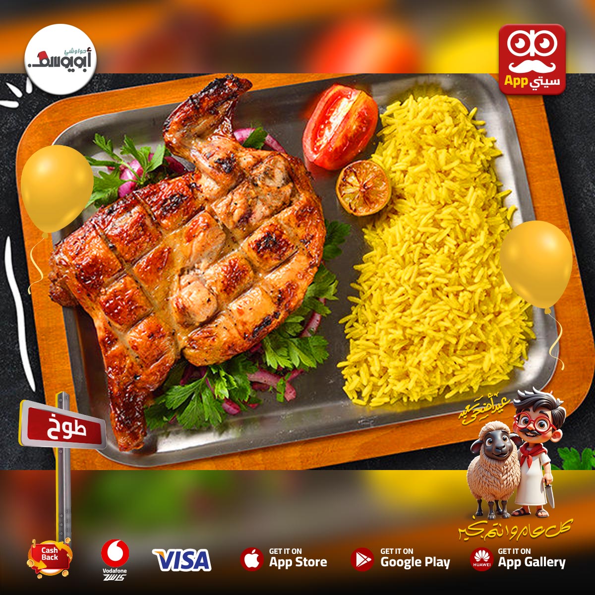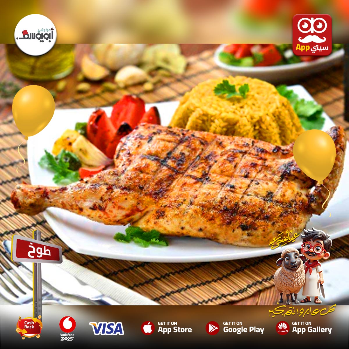 #عرض العيد من #حواوشي_ابو_يوسف😍♥️ !الفرخة عندنا مش زي أي فرخة... والطعم يشهد دلوقتي ولمدة محدودة: 🐔 فرخة كاملة بـ 250 بدل 300 🍗 نص فرخة بـ 125 بدل 150 🍖 ورك بـ 65 بدل 80 🥩 صدر بـ 70 بدل 90 شامل (أرز بسمتي + سلطة + طحينة + عيش) 💪 الطعم؟ متتبل صح ومشوي صح !والسعر؟ مش هيتكرر منشن للشلة واطلبو العرض من #حواوشي_ابو_يوسف🫶🏻✨