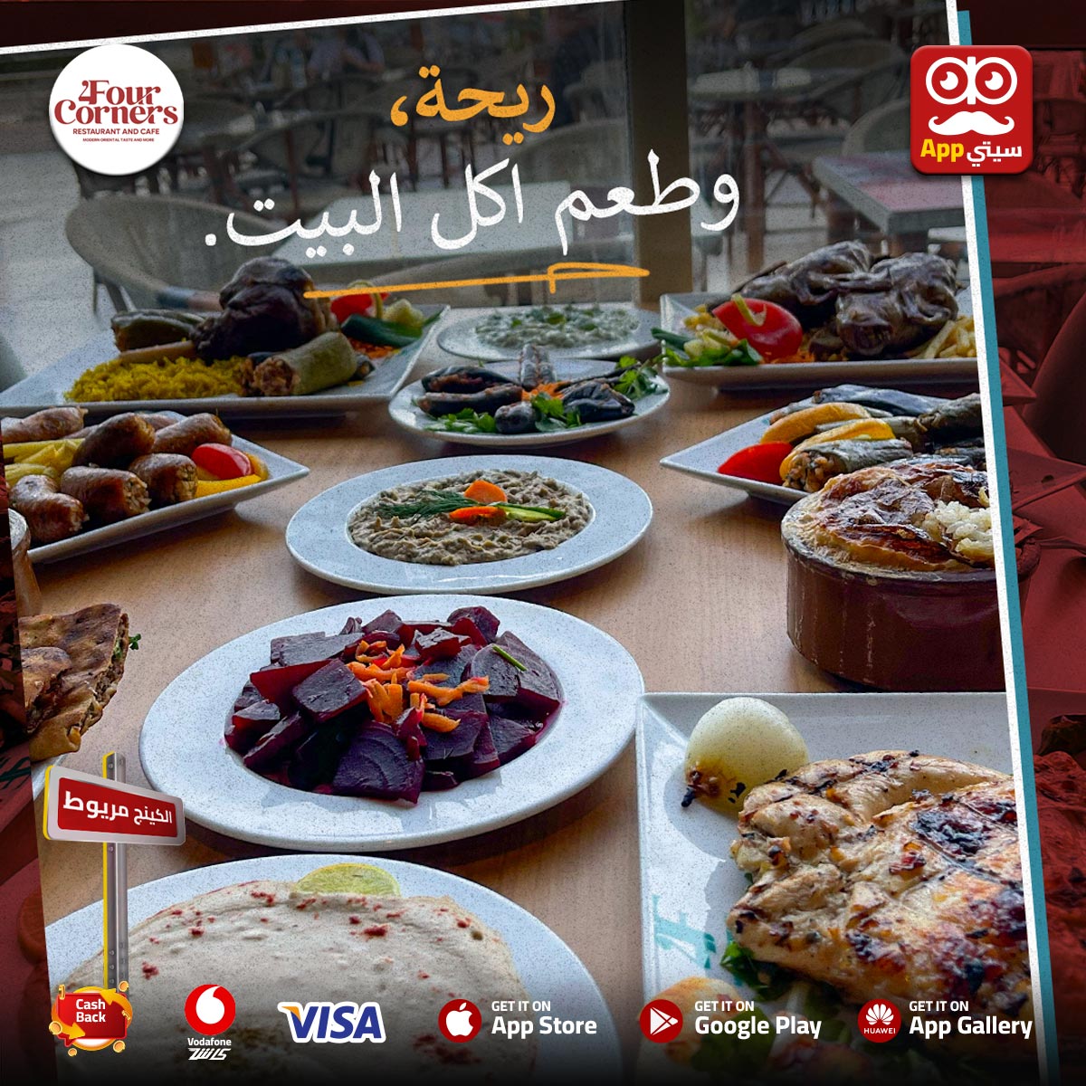 اللي بيحب أكل البيت الأصيل، لازم يجرب #فور_كورنرز 👌🔥 كل حاجة متحضرة بإيد شيفات متمكنين، والمذاق؟ فعلاً زي أكل البيت ❤️ من الحمام المحشي لطواجن المطبخ الشرقي، لحد اللحوم الطرية اللي بتدوب في البُقّ 🤤 كل الأكلات اللي بتحبها في مكان واحد فور كورنرز دايمًا عامل حسابك 😍👌