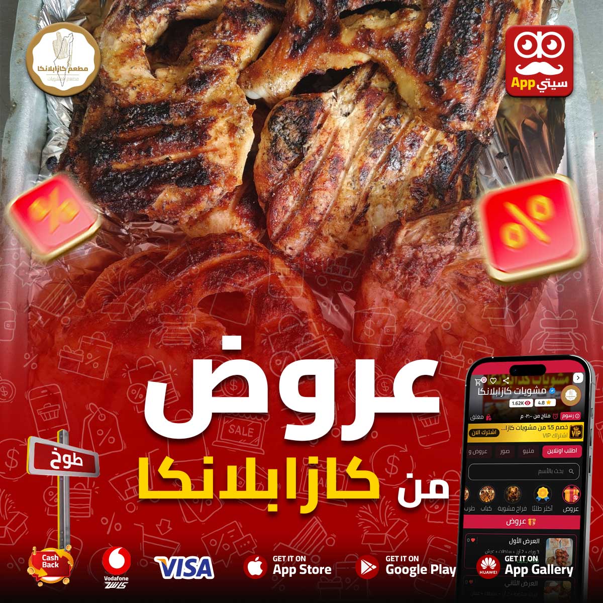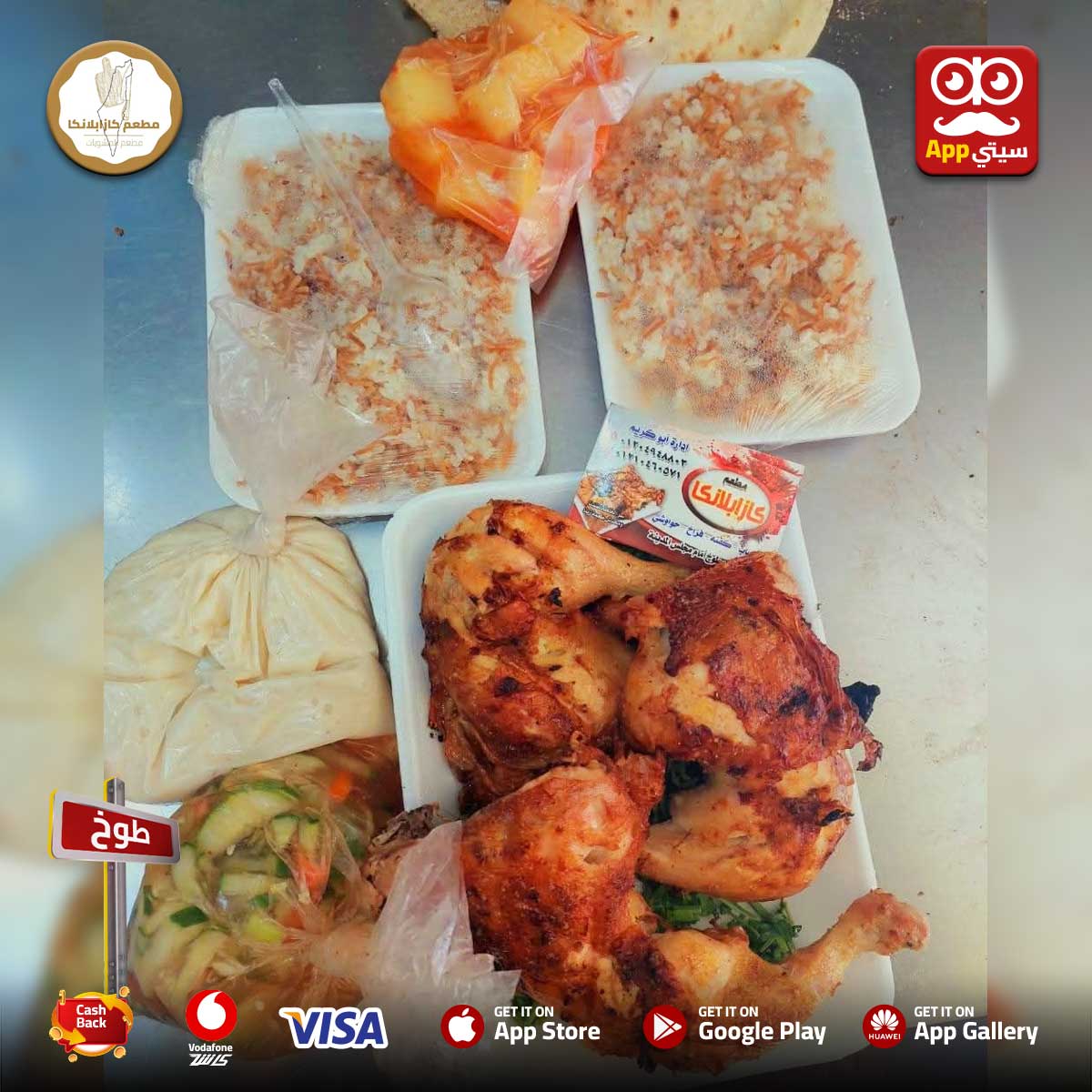 عروووض من #مشويات_كازابلانكا 🍗🔥 وجبات في اللذيذ منه 😋 والأحلى إنها على قد الإيد 💸 اختار اللي يناسبك واستمتع بالأكل الصح: 🍽️ 3 ورك + 2 رز + سلطات + عيش بـ 180 جنيه 🍽️ فرخة مشوية + 2 رز + سلطات + عيش بـ 260 جنيه 🍽️ 2 ورك + ربع كفتة + 2 رز + سلطات بـ 210 جنيه