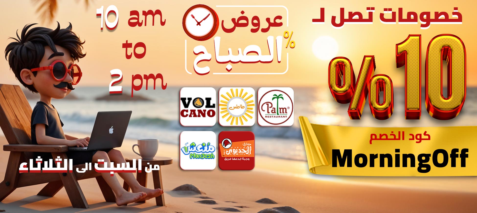 خصم 10% مستنيك في #شبين_الكوم كل صباح! 😍☀ مع عروض الصباح من #سيتي_اب وفر واستمتع بأحلى الأكلات من كل المطاعم اللي بتحبها 🍕🍔🌯 كل يوم: ✅ السبت - الأحد - الاتنين - التلات ⏰ من 10 الصبح لـ 2 الظهر من أكتر من 5 مطاعم لما تستخدم كود MORNINGOFF كل اسبوع هيبقى معانا مطاعم مختلفه تقدر تطلب منها 😍 اكلك كله عليه خصم 😉 ماتضيعش الفرصة واطلبها بدري