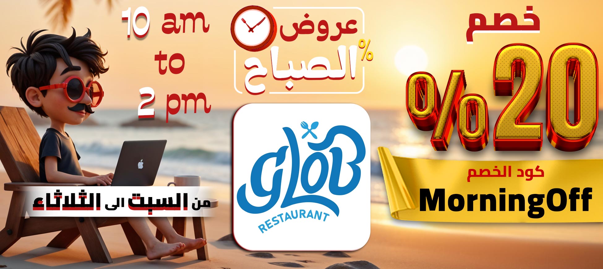 صباحك كله توفير مع خصم 20% 😉☀️ دلوقتي مع #عروض_الصباح هتاكل وتوفر في نفس الوقت! كل يوم سبت - حد - اتنين - تلات ⏰ من 10 الصبح لـ 2 الظهر من #جلوب مطعم في #بنها تقدر تطلب منهم لما تستخدم كود MORNINGOFF😎 كل اسبوع هيبقى معانا مطاعم مختلفه تقدر تطلب منها😍