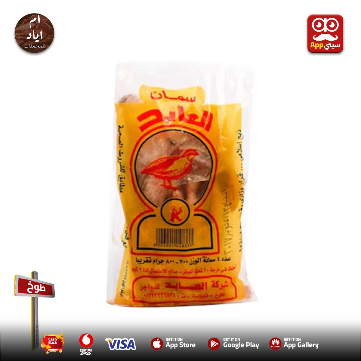 🧊 منتجات العابد المجمدة من #ام_اياد 📍 في #طوخ على تطبيق #سيتي_اب 📱 تحضير الأكل بقى أسهل وأسرع من زمان 🥩 كبدة وكلاوي مجمدة وجاهزة على التسوية 🍽️ بفتيك متقطع ومتظبط على التحمير كبدة بط ـ أجنحة فراخ ـ سمان ـ وراك فراخ كلهم متوفرين وجاهزين على طول 😉 🧊 خلي الفريزر دايما فيه حاجتك الأساسية ✅ اطلب منتجات العابد من أم إياد واستمتع بطعم مضمون وسهولة في التحضير 💯