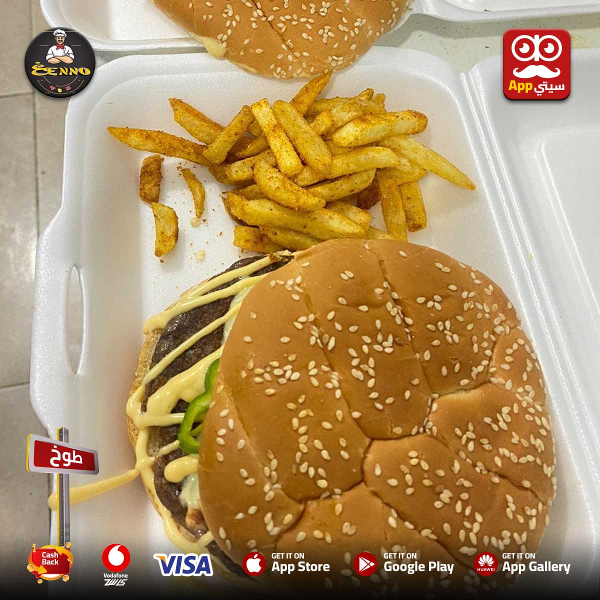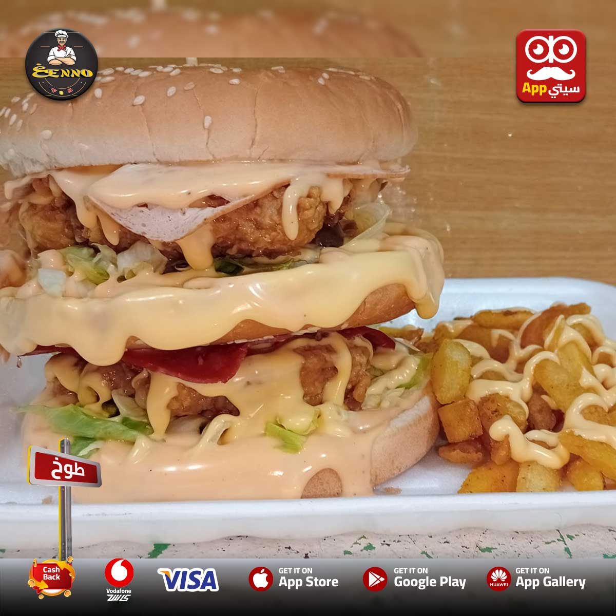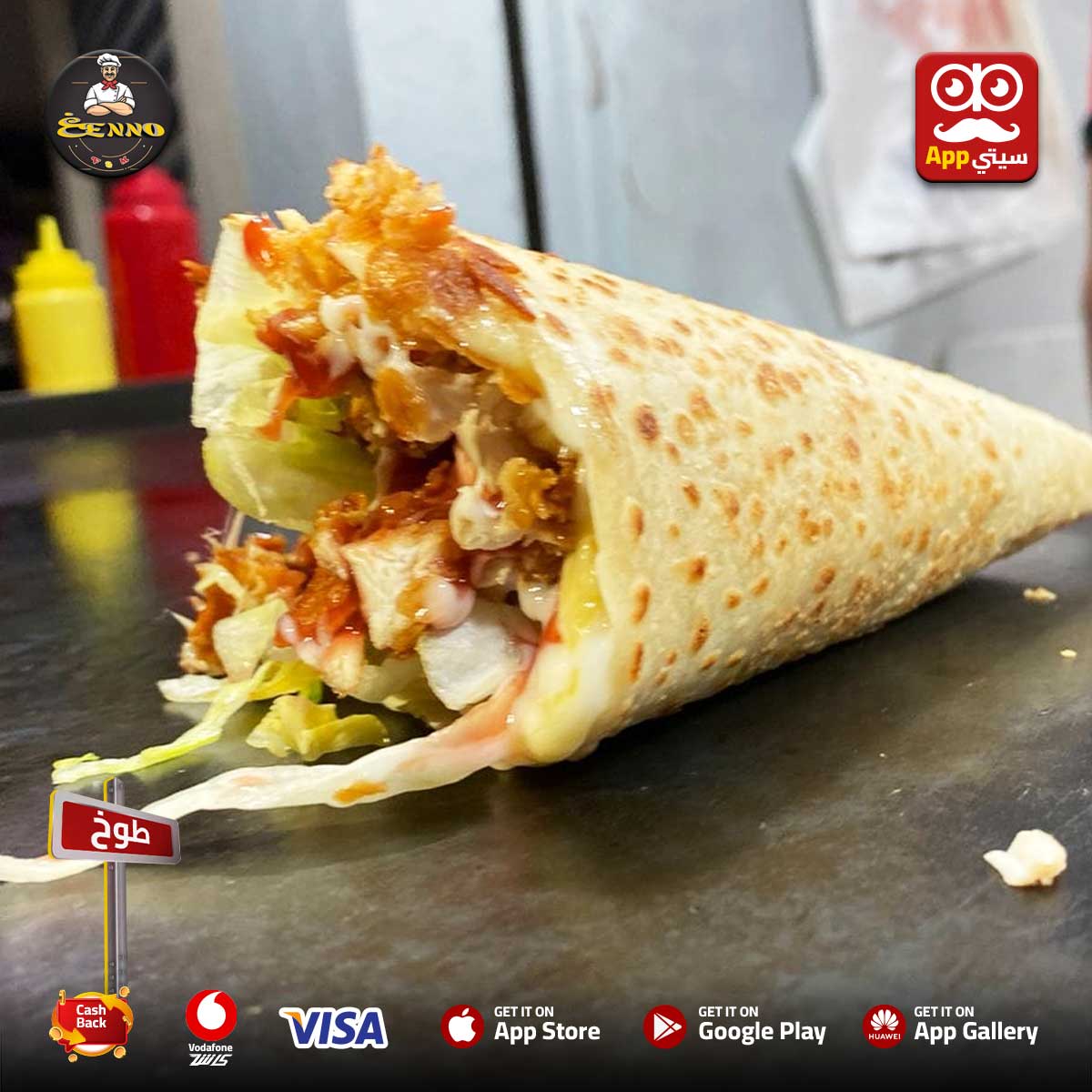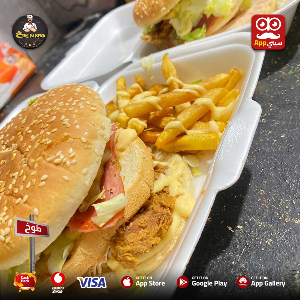 #غنو بقى متاح معانا #اونلاين ✨ في #طوخ على أبلكيشن #سيتي_اب 📱💎 بيقدملك كريبات بأطعمة متنوعة وكتير بطاطس، فراخ، لحوم ومكسات 🥖🔥 وكمان عنده سندوتشات سوري، برجر، وجبات وفراخ بروست 🍔🍗 ولو حبيت تنقنق؟ جرب باكت البطاطس بالجبنه وعليها الفلفر على زوقك 🧀🌶️ وفي الآخر كريبات حلوه تحلي بيها 😍🍫