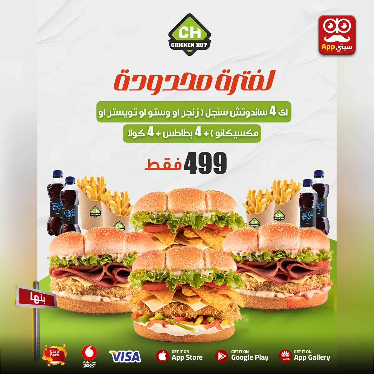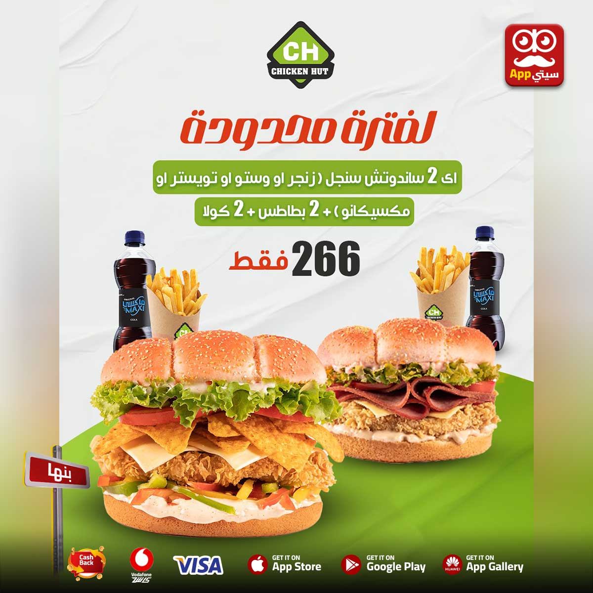 عروض الصيف ولعت عند #تشكن_هت 🍗🔥 3 عروض أجمد من بعض 😎 🥇العرض #الاول 🍔 2 ساندوتش سنجل + 2 بيبسى + 2 بطاطس بـ 266 جنيه فقط 💸 🥈العرض #التاني 🍔 4 ساندوتش سنجل + 4 بيبسي + 4 بطاطس بـ 499 جنيه فقط 💸 🥉العرض #التالت 🐔 تشكن باند (9 قطع دجاج المقرمش + 4 خبز + كلوسلو عائلى) بـ 389 جنيه فقط 💸 ❗العرض ساري على: زنجر – وِستو – مِكسكانو – توستر العرض لفترة محدودة يعني لو من عشاقهم يبقى متفكرش كتير 😎