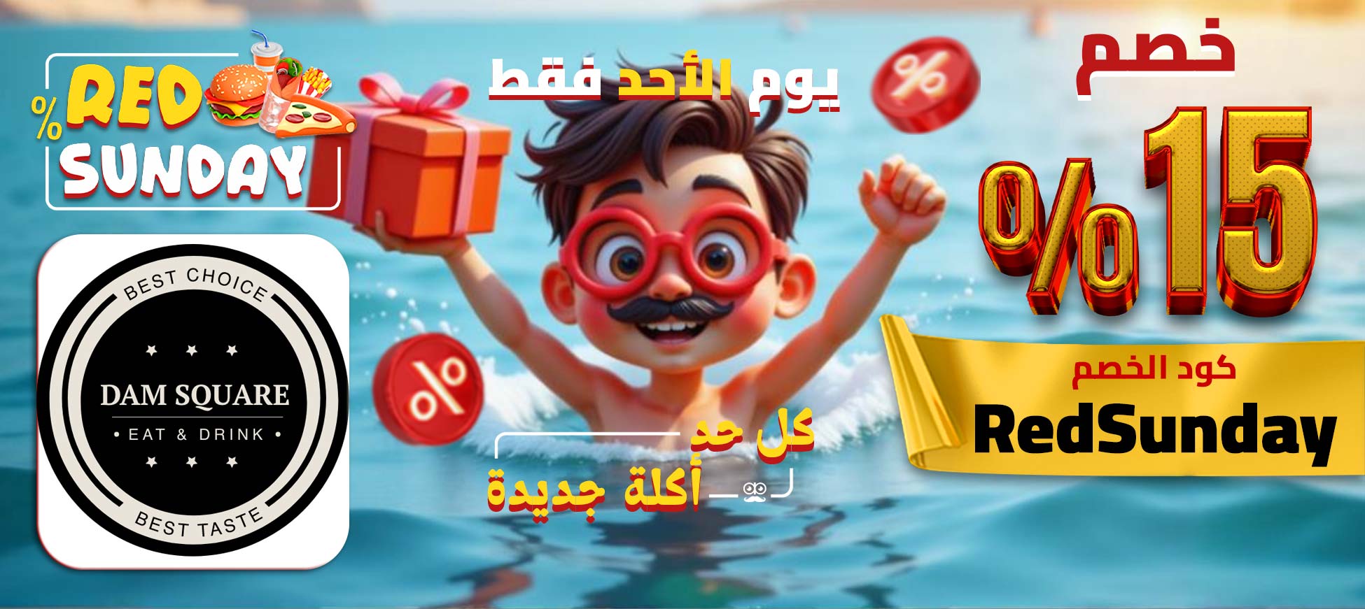 ♦ جاهز لـRed Sunday في #بنها ؟؟ خصومات تصل الى 15%♦ الأحد هنا مش عادي.. 😍 كل أسبوع بنختار نوع أكل جديد والاسبوع ده اختارنا: برجر 🍔 من دام اسكوير في #بنها 🤯 وهتستمتع بالخصم لما تستخدم كود خصم REDSUNDAY♥ وفر واستمتع .. بأحلى سعر مع #سيتي_اب 😉