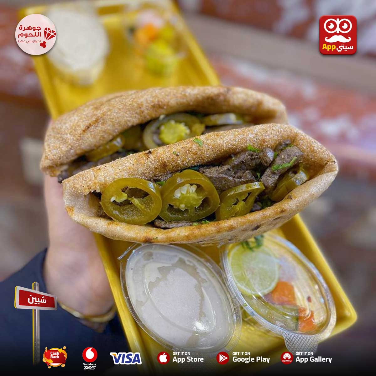 حاجه حرشه من الآخر من #حواوشي_علاء في #شبين على ابلكيشن #سيتي_اب 📱💎 ساندوتشات حرشه هتاخدك في عالم تاني🔥 ساندوتشات جريل متكاملة بأحلى طعم: كبدة، سجق، استيك، وكفتة مشوية على أصولها 🥩😋 لو نفسك في حاجة حرشه تفتح النفس وتخليك تطلب تاني، هنا مكانك 😋🍞
