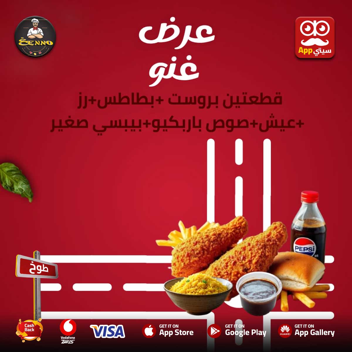 أقوى #عرض من #غنو في #طوخ 😍🔥 على ابلكيشن #سيتي_App 📱💎 🎯 جاهز تعرف العرض ايه 🤔👇 قطعتين بروست 🍗 + بطاطس 🥔 + رز وعيش طازة 🍚 + صوص باربيكيو 🔥 + بيبسي صغير 🥤 كل ده بـ 100 جنيه بس 🤯💸 🫵 الفرصة قدامك، اطلب دلوقتي وعيش مع #غنو اللحظة بكل حلاوتها 💞