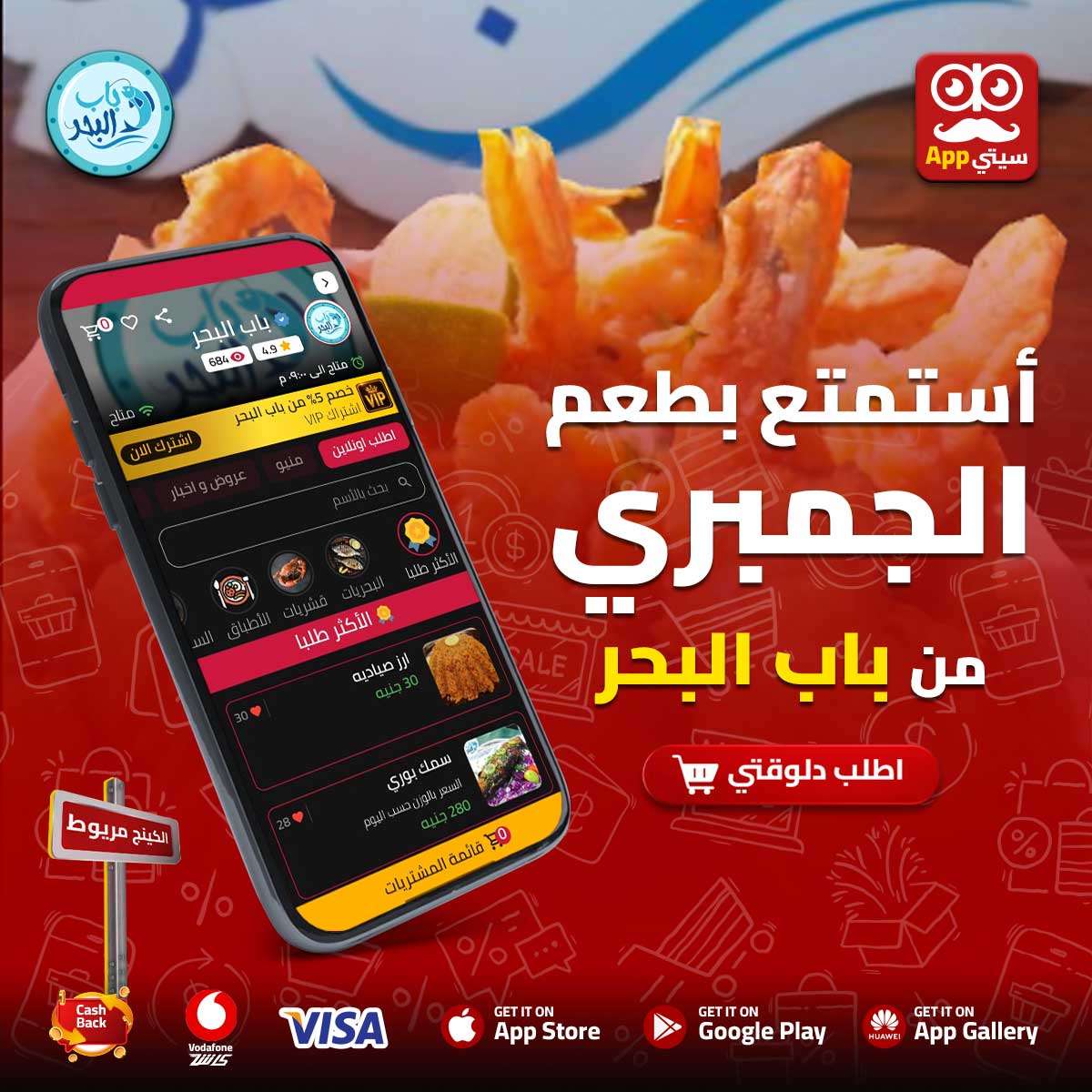 🦐 استمتع بطعم الجمبري من #باب_البحر في #كينج_مريوط على ابلكيشن #سيتي_اب 📱 دا مش أي جمبري، ده متبل بالتوابل السرية، وبيتحمر أو يتشوي لحد ما يبقى مقرمش من بره وطري من جوه 🤤🔥 ومش بس الجمبري 👌 🐟 أسماك يوم بيومها مشوية ومقلية 🐙 تشكيلة سي فود طازة 🍲 شوربة سي فود غنية بالنكهات 🍝 سي فود سباجيتي على الطريقة الأصلية مع #باب_البحر كل وجبة هي رحلة بحرية بطعمها، من أول قضمة لآخر لقمة 🌊💙