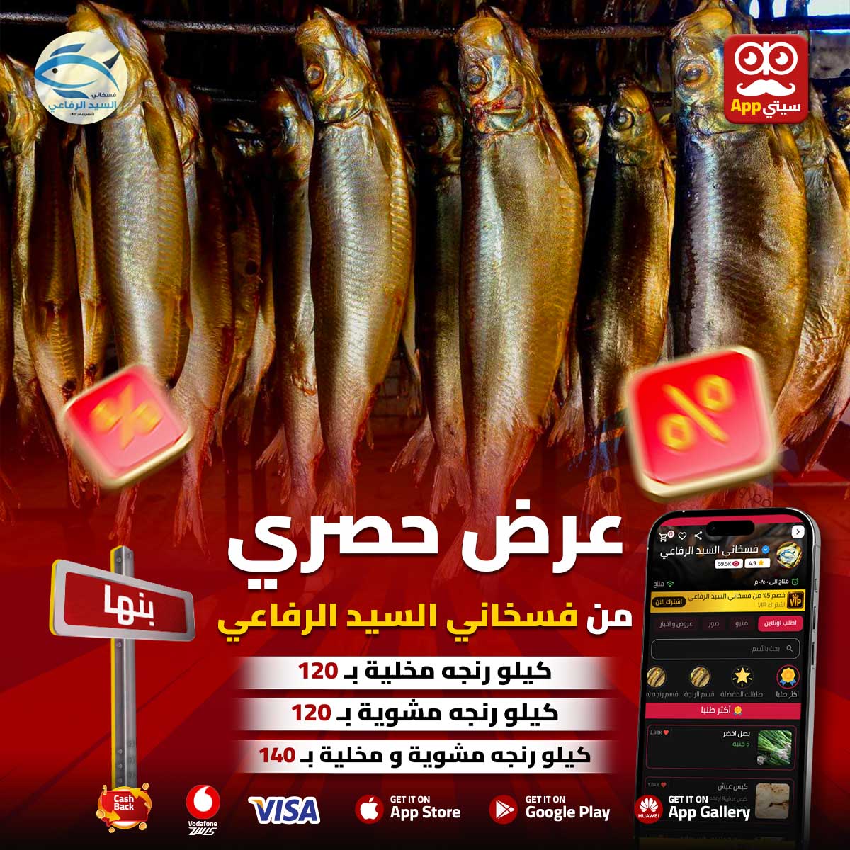 عروض من #فسخاني_السيد_الرفاعي 🔥🐟 حصريا على أبلكيشن #سيتي_اب 📱💎 يومك مينفعش يكمل من غير رنجة 😋 عشان كدا جبنالك عروووض هتدلعك 😉👌 🐟 كيلو رنجة مخلية بـ 120 ج 💸 🐟 كيلو رنجة مشوية بـ 120 ج 💸 🐟 كيلو رنجة مشوية ومخلية بـ 140 ج 💸 وزي ما انت عارف الرنجة محتاجة الكمالة 🧅 بصل • 🍋 ليمون • 🥖 عيش متنساش تطلبهم مع الأوردر وتكمل الأكلة 👌