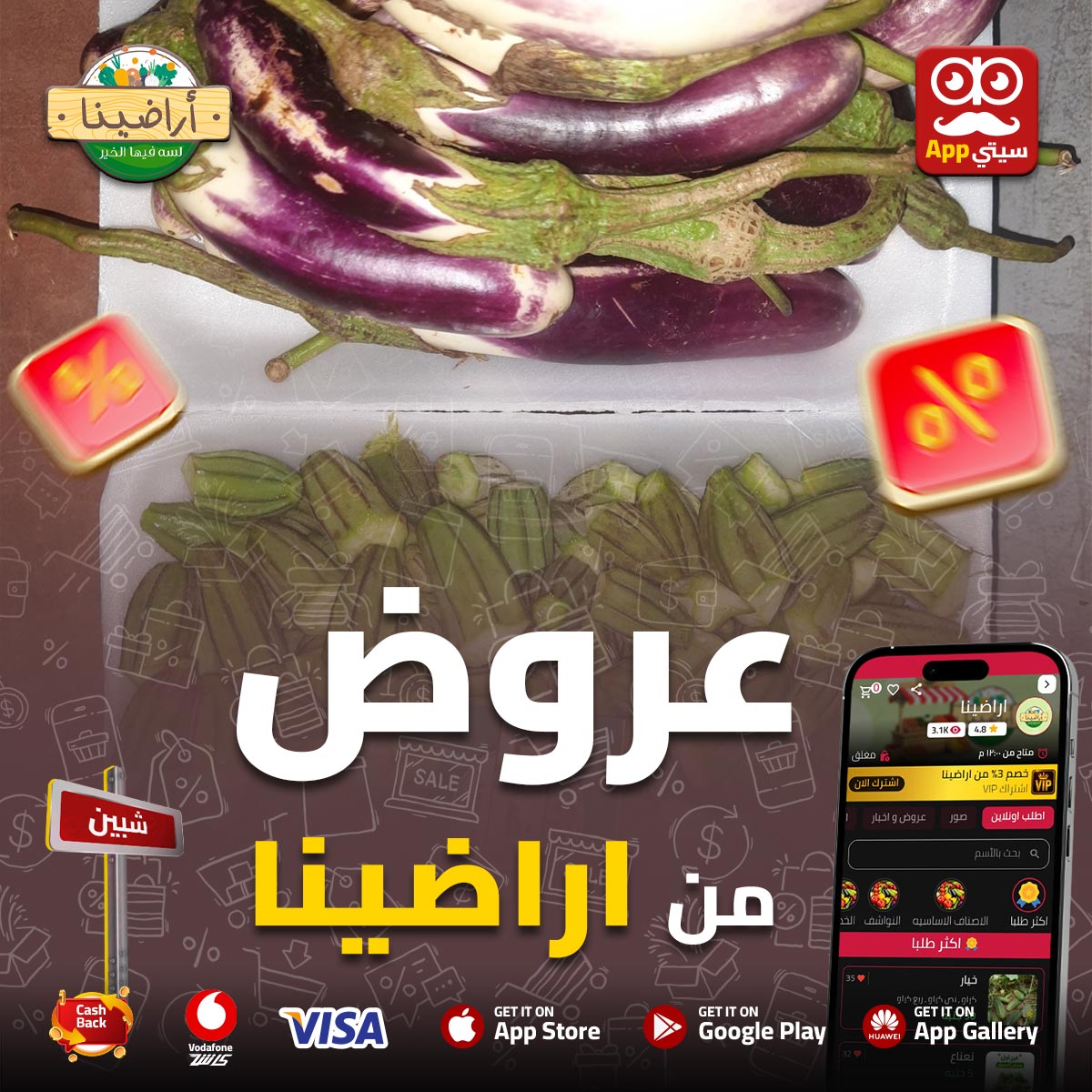 ✨ عروووض من #اراضينا في #شبين ✨ 📱💎 على ابلكيشن #سيتي_اب 📱💎 كلنا متميزين في طبخات حلوة 😋 وعارفين نخلي لكل أكلة نكهة خاصة 👩🍳✨ علشان كده عملنالكم عرض الباكدجات 🤓👏 🔸 عرض المحشي 🥗 كيلو كرنب مسلوق + كيلو بذنجان + نص كوسه + ربع فلفل + خضرة المحشي كل دا جاهز وبـ 100 ج بدل 130 ج 💸 🔸 عرض السلطه 🥙 كيلو ونص طماطم + كيلو خيار + نص جزر + ربع فلفل على شطه + ربع ليمون وكل دا بـ 70 ج بدل 85 ج 💸 🔸 طبق الباميه + كيس بذنجان للتخليل + كيس صلصه بـ 80 ج 💸 🔸 عرض الاطباق الجاهزه 🥔 طبق بطاطس حشو بـ 25 ج 💸 🔸 طبق الملوخيه المخرطه ناعم بـ 30 ج 💸 🔸 طبق التورلي بـ 35 ج 💸 🔸 طبق فاكهه مشكله بـ 45 ج 💸 خلي دايما شعارك مع اراضينا 🙈 خضارك وفاكهتك لحد باب البيت 🏫 وبيكم اراضينا لسه فيها الخير 👌