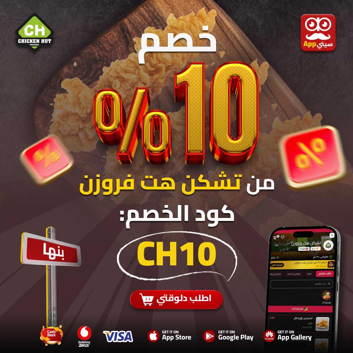 🥶 خصم 10% من #تشكن_هت_فروزن ✨ استمتعي بالخصم على جميع منتجاتنا 💙 لما تستخدمي كود الخصم " CH10 " 🎁 خلي الفريزر دايما مليان بطعم مضمون 💯 🍗 فراخ، بانيه، ستربس، كله جاهز يسهل حياتك ويوفرلك وقت ومجهود 🙌