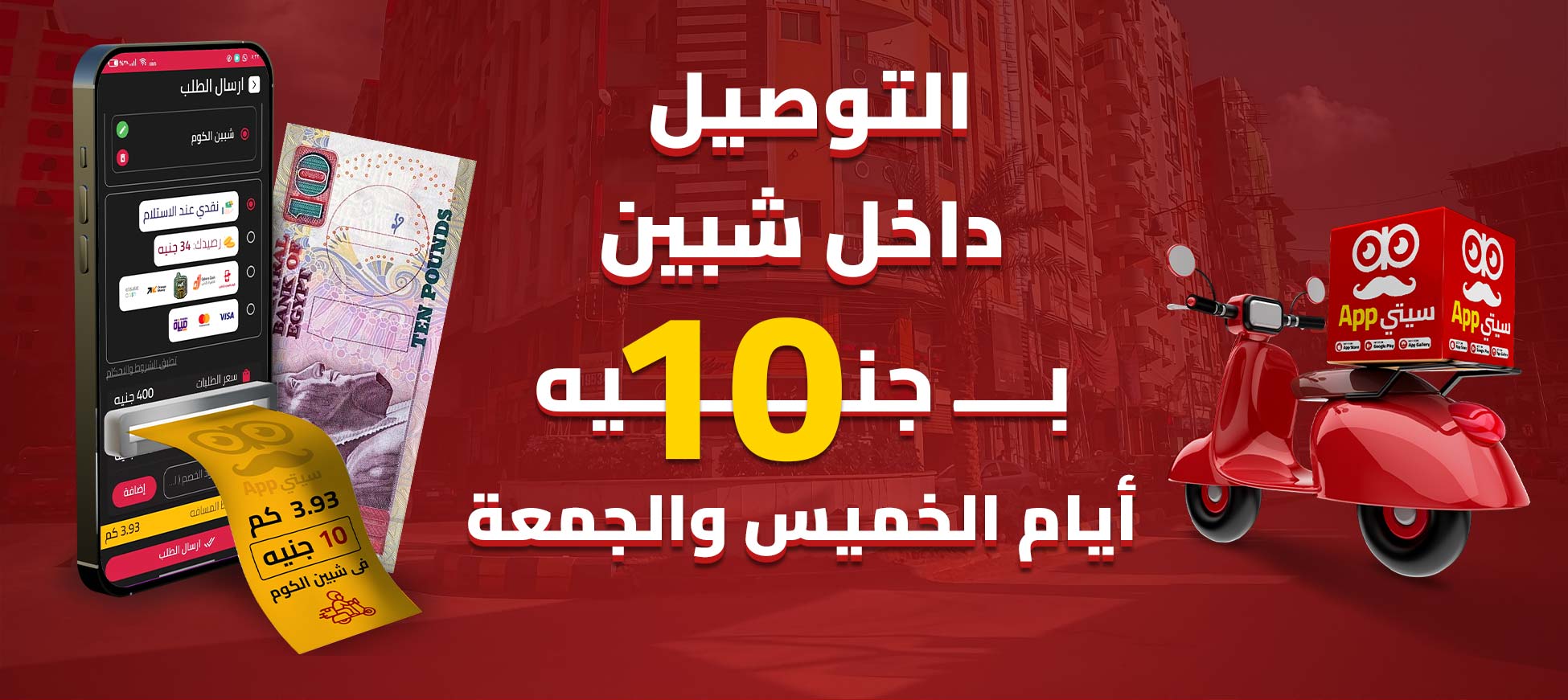 حصريا ع ابلكيشن #سيتي_اب 📱💎 التوصيل بقى بـ 10 جنيه بس 🤯 🚀 داخل #شبين أيام الخميس والجمعة 🛵💨 🛍️ دلوقتي كل طلباتك من ( المطاعم، الصيدليات أو السوبر ماركت ...إلخ ) توصلك لحد البيت و بأحلى سعر توصيل 💸✨