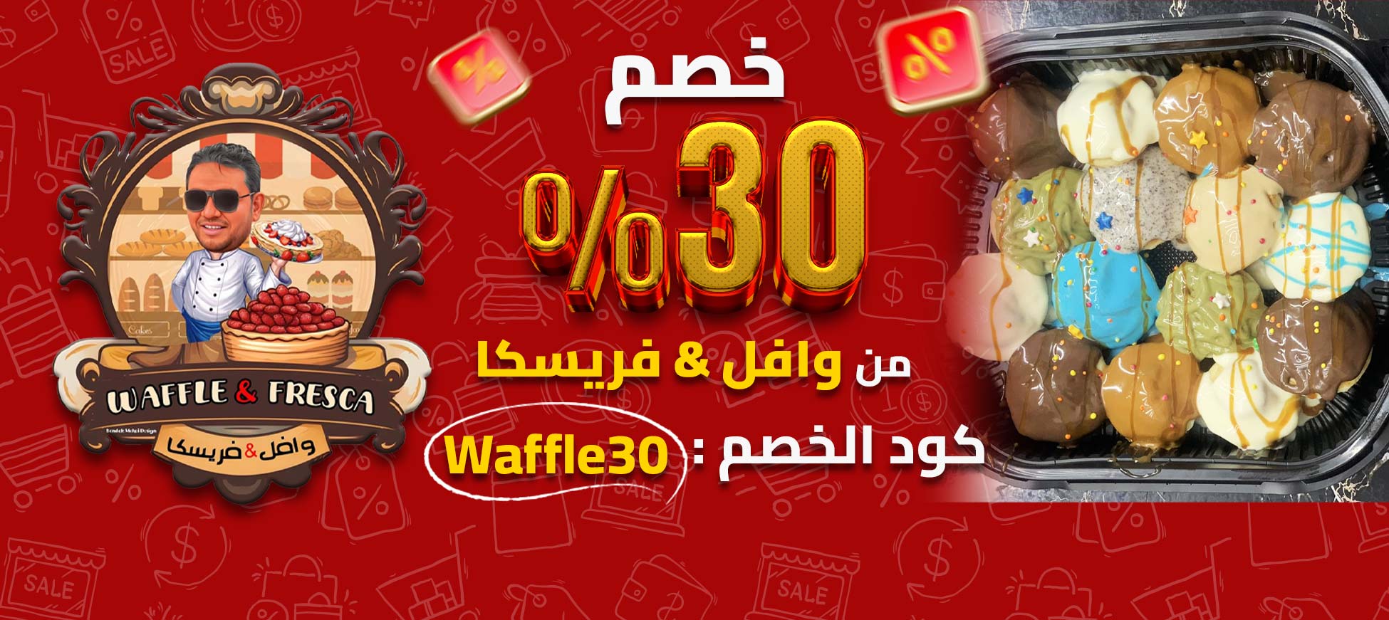 خصم 30% ع المنيو كله من #وافل_فريسكا😍 لما تستخدم كود الخصم " Waffle30 " 🎁 يعني بان كيك طري يدوب في البق 🥞 وافل غرقان صوصات 🧇 وفريسكا بتقرمش ✨ ومن الآخر، الحلو هنا له شكل تاني، سواء هتاكله مع صحابك ولا تاخده سناك يظبط يومك 🍫♥️ استغل العرض وخلّي الحلو دايمًا جنبك 😉