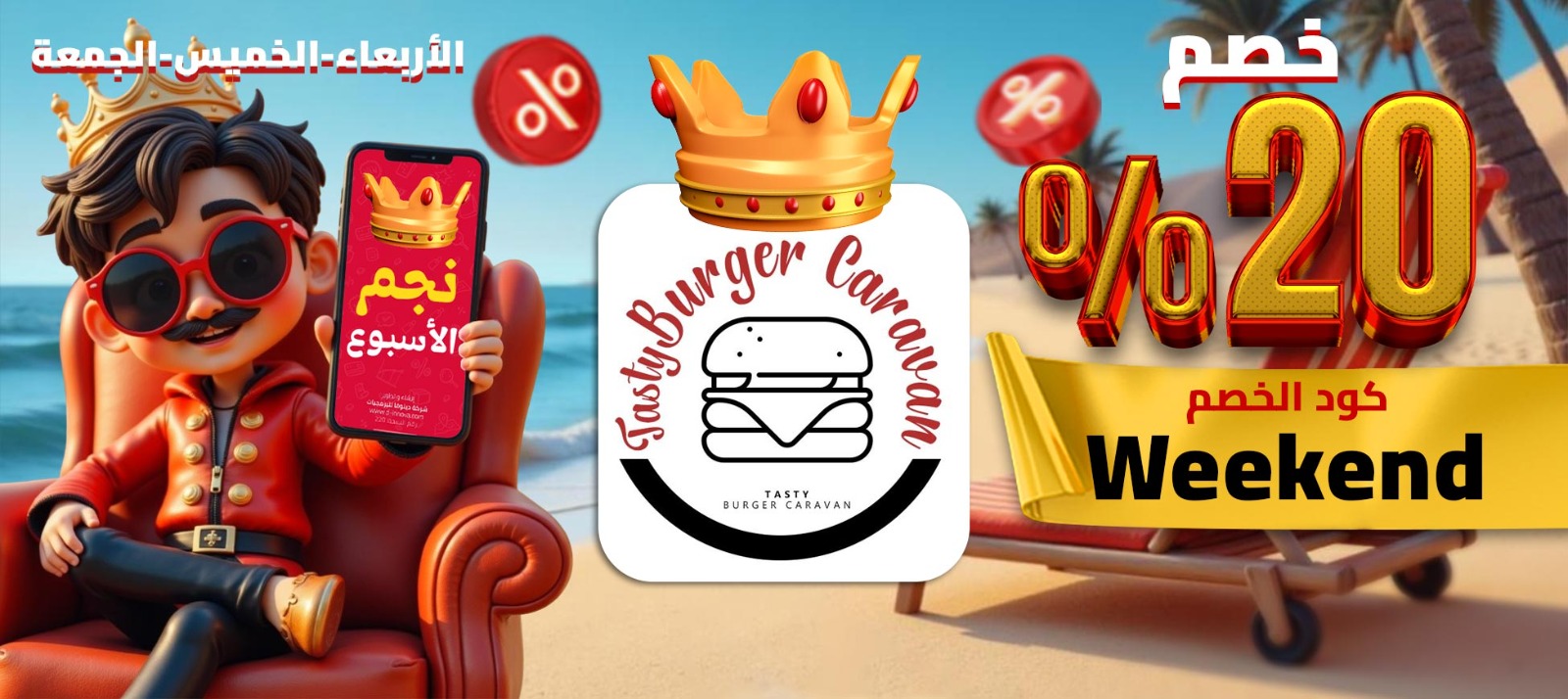 # نجم الأسبوع معانا فى #شبين 😍 #تيستي_برجر 🥰🎉 يوم الأربعاء و الخميس و الجمعة خصم 20% على المنيو كلووووو 🥳🥳 لما تستخدم كود خصم "Weekend" 🙈 كل أسبوع خصومات تصل إلى 50% 🤯 اطلب دلوقتي واستفيد من العرض 😉 تابعنا عشان تعرف مين نجم الأسبوع الجاي من #سيتي_اب 🙈