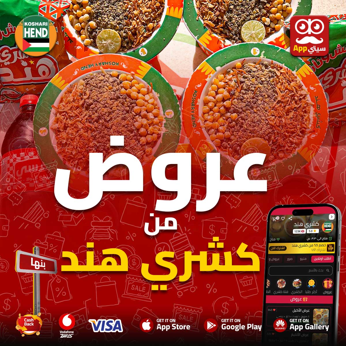 🍛 عروض من #كشري_هند مش هتفكر مرتين قبل ما تطلبها لأن، الريحة لوحدها كفاية 😋 وما بالك الطعم بقا عنده ملوش مثيل 👑 🤍 عرض الزملكاوية: 3 زملكاوي + 2 توست + خيار + لتر مشروب بـ 135 ج ❤️ عرض الأهلاوية: 4 أهلاوي + 2 توست + خيار + سلطة + لتر مشروب بـ 145 ج 🥖 عرض السندوتشات: 3 كبدة فينو أو بلدي + 3 سجق فينو أو بلدي + 6 كاتشب + مخلل + 2 مشروب بـ 150 ج 👨👩👧👦 عرض العيلة: 3 هند + 2 زملكاوي + خيار + سلطة + 3 توست + 2 لتر مشروب بـ 190 ج بدل 255 ج اطلب دلوقتي ولم اهلك وأصحابك وعيشوا اجمل تجربه مع #كشري_هند 🍛♥️