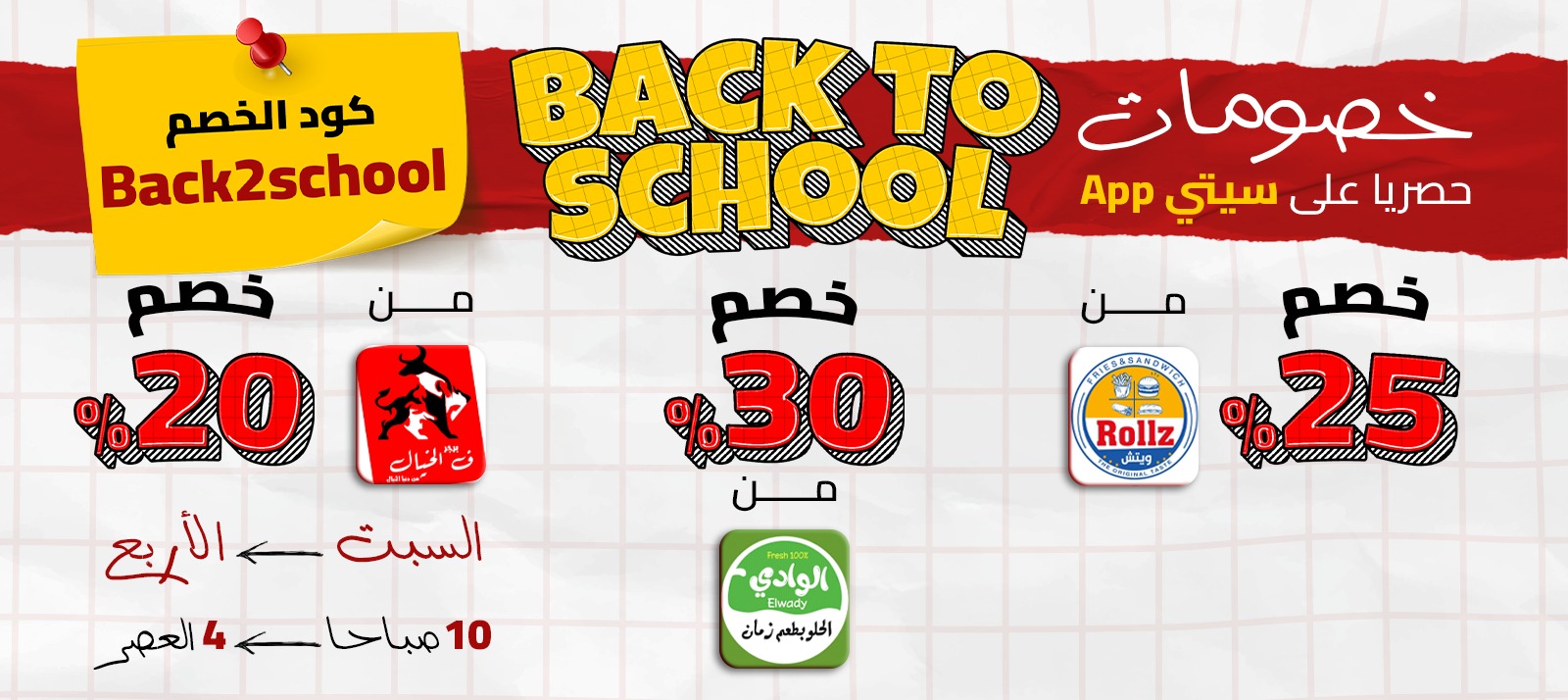 #خصم 30% و #التوصيل كمان بـ 15ج 😱 📚✨ الدراسه رجعت وسنة جديدة؟ واحنا رجعنا بعروض جديدة فـ #شبين 😉🔥 بدل ما تذاكر على معدة فاضية ✍️📖 جبنالك #خصومات حصرية ع ابلكيشن #سيتي_اب 📱تصل لحد 50% 😎👌 لما تستخدم كود الخصم: Back2School 🎁 🚚 وكمان التوصيل داخل شبين بس بـ 15ج 💸 ⏰ العروض سارية من السبت لحد الأربعاء من الساعة ⏳ 10 الصبح لحد 4 العصر بس ودي مطاعم الاسبوع دا في #شبين 😎👇 🍰 #الوادي : خصم 30% 🍕 #رولز_ويتش : خصم 25% 🍗 #فـ_الخيال : خصم 20%