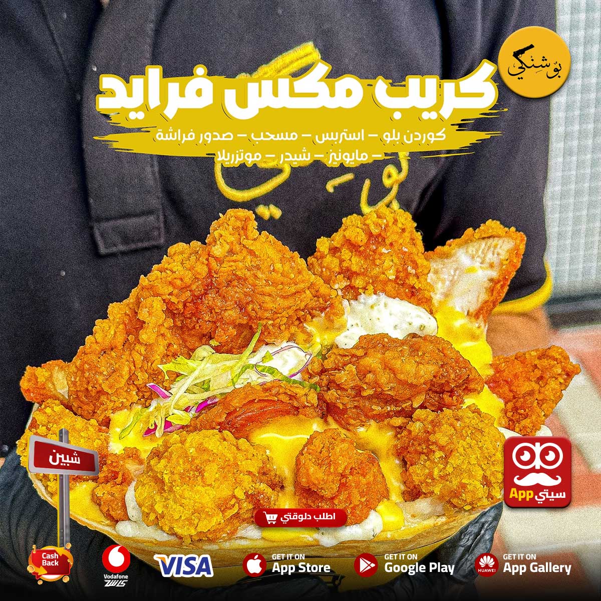 #بوشنكي_كريب بيقدملك تجربة كريب مش عادية خالص 👌🙈 فـ #شبين ع ابلكيشن #سيتي_اب 📱💎 كريبات مليانة مكسات ومتغرقة بتشكيلة صوصات تخليك تعيش اللحظة 🤤 جرّب كوردن بلو الفراخ، أو الزرومبيح أو مكس الفرايد، أو القاضية 💥 اطلب دلوقتي وعيش المزاج العالي مع بوشنكي ❤️