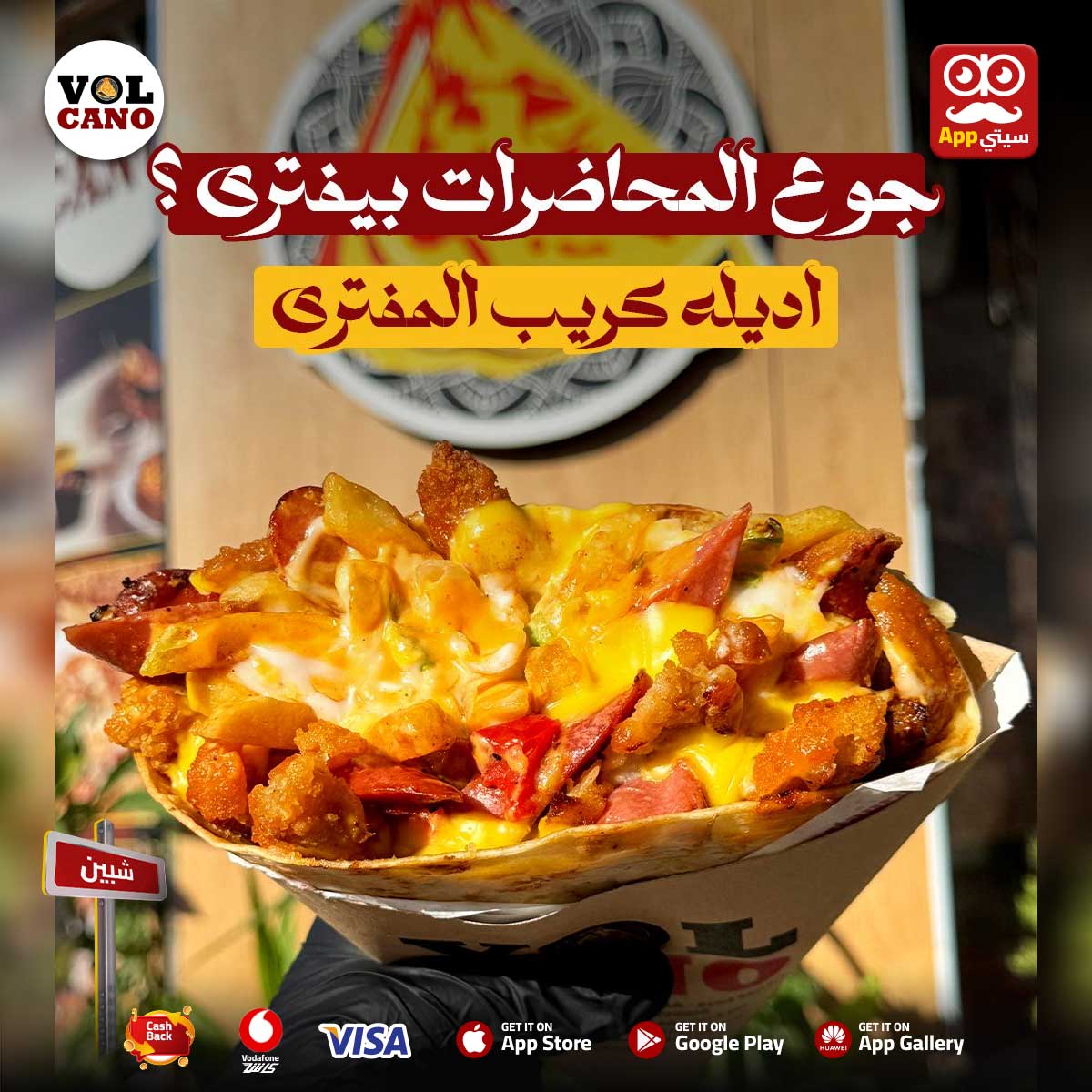 المعلومات كتييير والجوع كبييير؟ 🤯 يبقى الحل في كريب المفتري من #فولكانو 🔥 فـ #شبين ع ابلكيشن #سيتي_اب 📱💎 طعمه خطير وبيشبع بطريقة تخليك تكمّل اليوم مبسوط 😋 يلا اطلبه بين المحاضرات وصحصح للمعلومات 💪📚