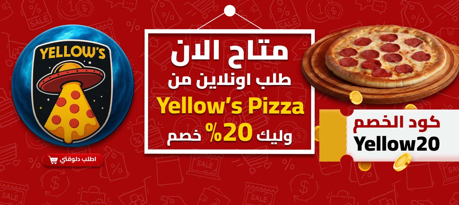 #خصم 20% مع #يلوز_Yellows👽🌍 بمناسبة إنه بقى متاح معانا أونلاين ✨ فـ #بنها ع أبلكيشن #سيتي_اب 📱💎 لما تستخدم كود الخصم " Yellow20 " 🎁 جرب البيتزا، الباستا، الطواجن وبطاطس يلوز اللي جاية من مجرة تانية 🪐🔥 استعد للإقلاع مع يلوز Yellow's 🚀✨ وخلي الطعم يخطفك لكوكب تاني 💛🛸