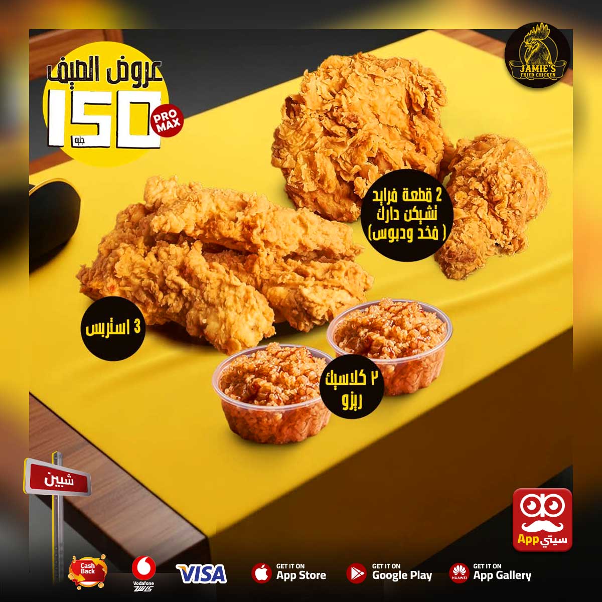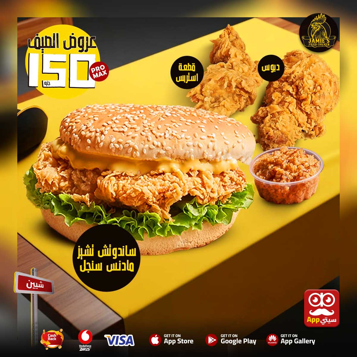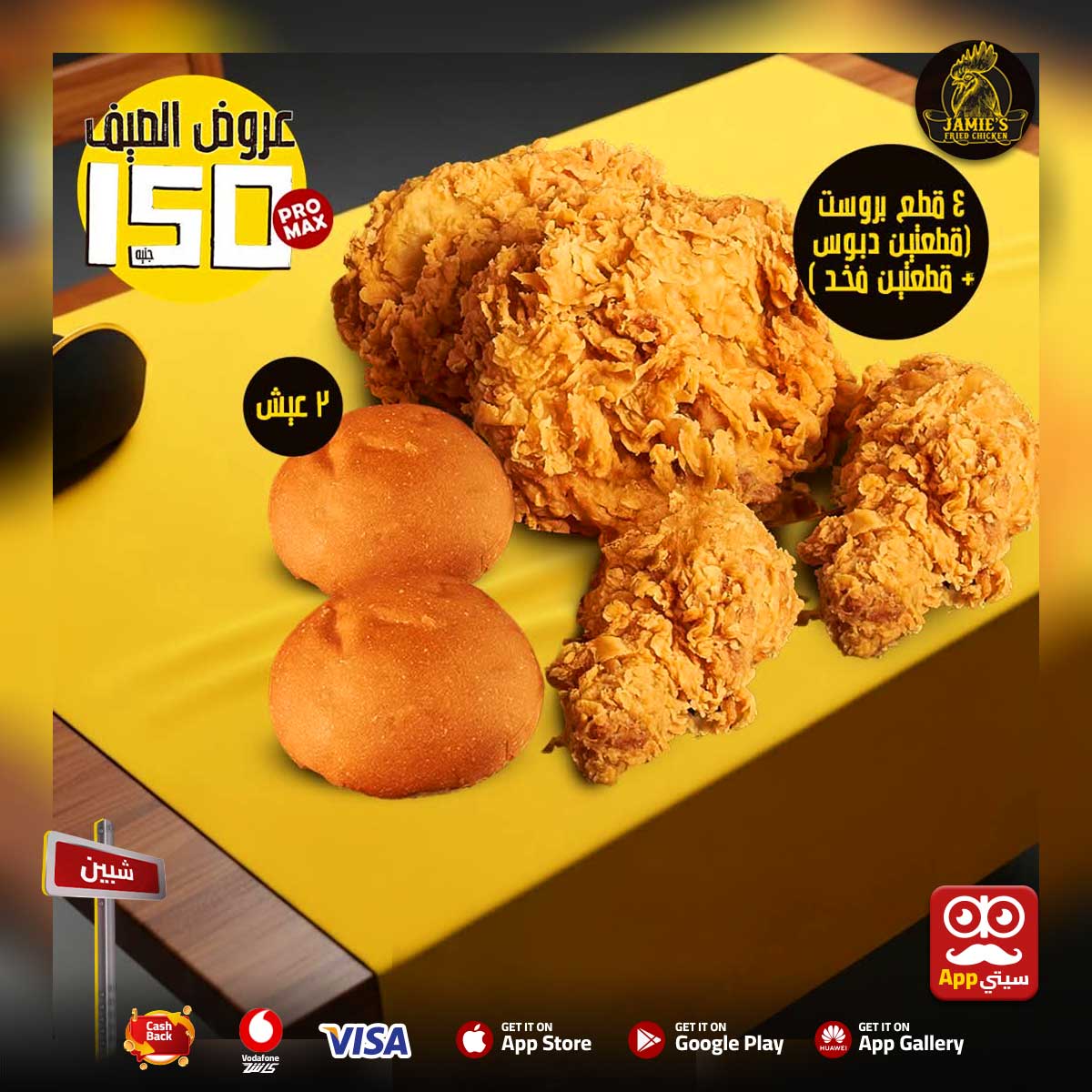 #عروض الـ 150 من #جيمس_Jamies 🔥 بمناسبة إنه بقى متاح معانا أونلاين ✨ فـ #شبين على أبلكيشن #سيتي_اب 📱💎 متشلش هم الفلوس مع جيمس عشان جايلك بـ 3 عروض خرافية كل عرض اجمد من التاني 👇🏻 🍗 العرض الاول 2 بروست دارك + 3 ستربس + 2 كلاسيك ريزو سمول بـ 150 ج 🍔 العرض التاني تشيز مادنس سنجل + دبوس + قطعة ستربس + كلاسيك ريزو سمول بـ 150 ج 🍗 العرض التالت 4 قطع بروست دارك + اتنين عيش بـ 150 ج الاختيار الصعب دا ليك 😏 اطلب استعد لجرعة وطعم مايتوصفش 😋
