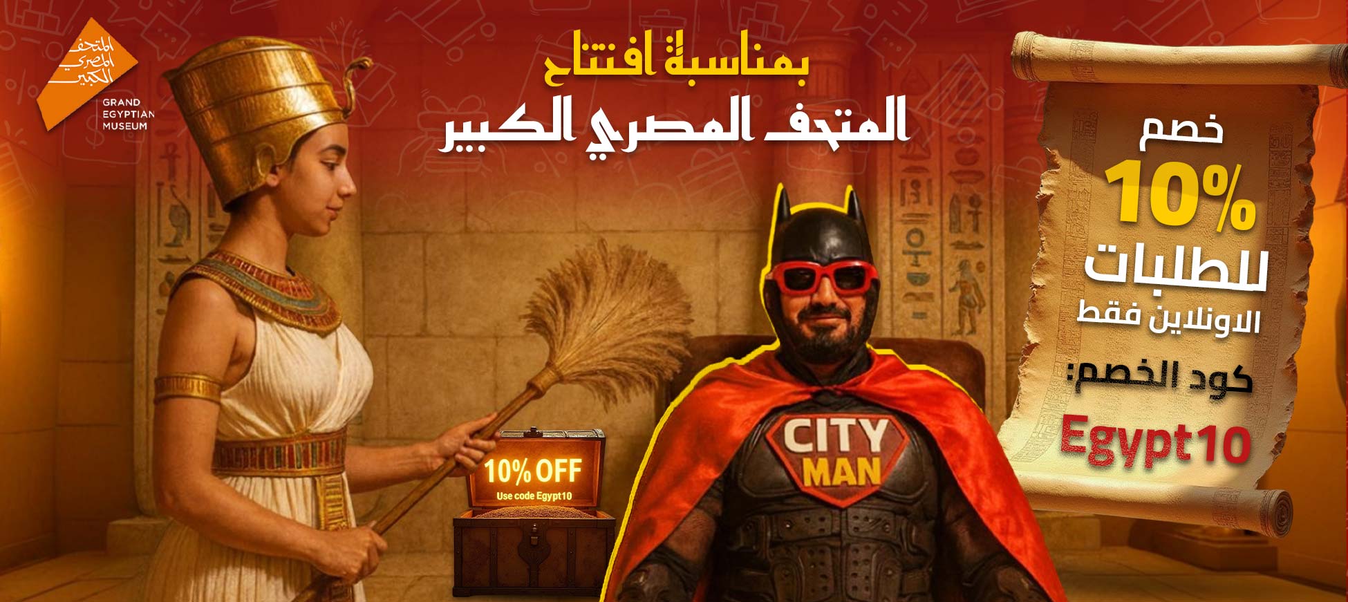 #خصم 10% 🎉 بمناسبة افتتاح #المتحف_المصري_الكبير 🇪🇬 على كل الطلبات الأونلاين فقط ع ابلكيشن #سيتي_اب📱💎 لما تستخدم كود الخصم " Egypt10 " 🎁 في كل مطاعم بنها وشبين وكينج مريوط 🍽️✨