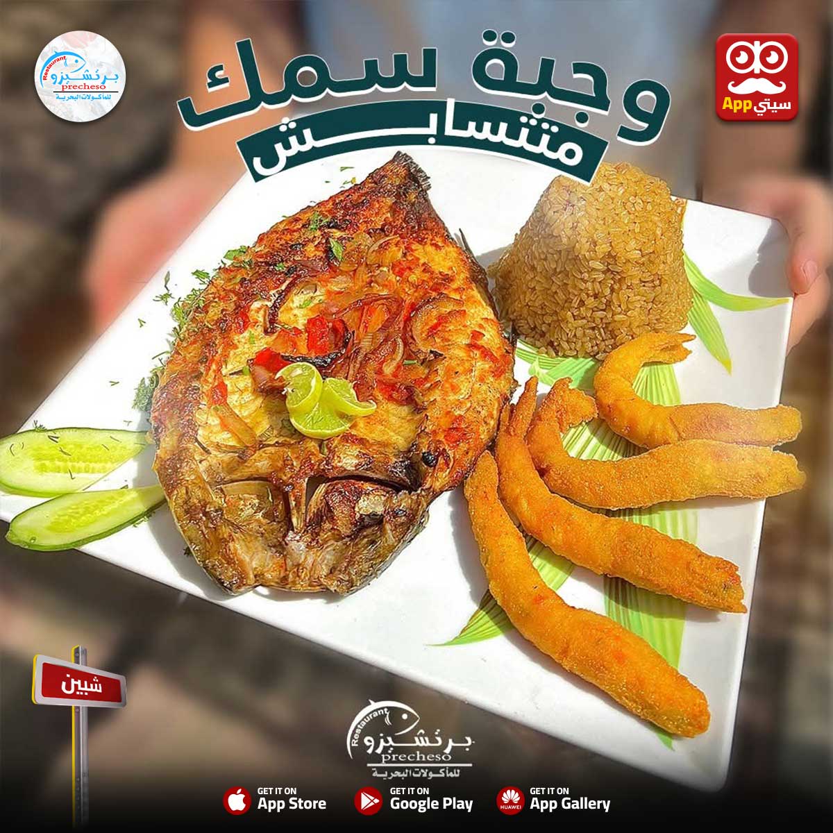 بمناسبة ان #برتشيزو بقي متاح اونلاين ✨ فـ #شبين ع ابلكيشن #سيتي_اب 📱💎 جهزنا لك #عرض مايترفضش 🦞🔥 وجبة حمام البحر بـ 300 ج 💰 ومعاها شوربة جمبري حمرا هدية 🎁 الوجبة عبارة عن : 🐟 سمكة بوري سنجاري 🍤 جمبري مقلي 🍚 أرز 🥗 وسلطات اطلب دلوقتي أونلاين من برتشيزو واستمتع بمذاق البحر من مكانك 🌊💙