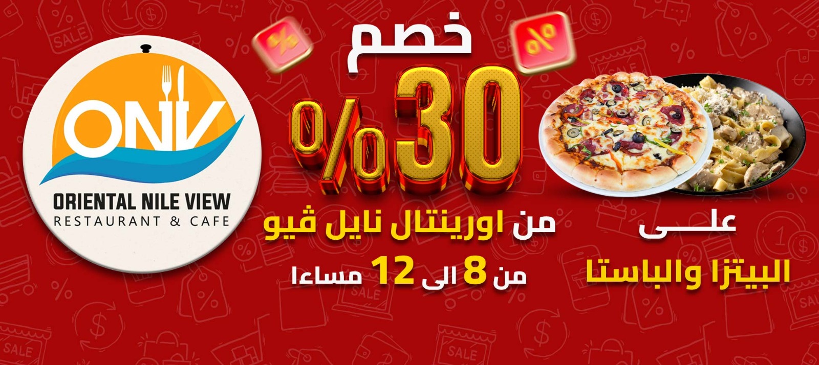 خصم 30% من #أورينتال ع البيتزا والباستا 🍕🍝 جعان بالليل ومش معاك فلوس؟! 😅 جبنالك الحل لحد عندك 💛✨ الحق اطلب واستمتع بالخصم 💸 من الساعة 8م لـ 12 منتصف الليل ⌛