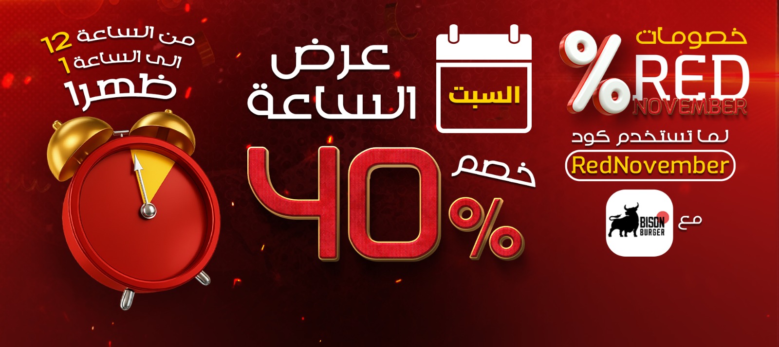 عشان إحنا دايمًا مختلفين ✨ عملنالكم عروض Red November ❤️🔥 #خصومات تصل لـ 50% 🥳 على ابلكيشن #سيتي_اب 📱💎 🍔 عرض الساعة - كل يوم سبت : ⏰ من الساعة 12 لـ 1 ظهراً خصم 40% من #بايسون_برجر ع المنيو كله لما تستخدم كود الخصم " RedNovember " استعد لخصومات بكرا من سيتي اب 😉