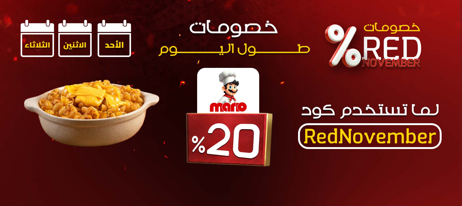 #خصومات تصل لـ 40% فـ #بنها 🥳 علشان احنا داخلين نوفمبر بشكل مختلف 🔥 عاملين لكم الـ Red November ❤️🔥 طول الايام (الأحد - الاثنين - الثلاثاء) خصم 20% من ماريو استخدم كود الخصم " RedNovember" 🎁 الخصومات بدأت… وإنت لسه بتتفرج ؟ الحق عروض سيتي اب ومتفكرش كتير 😉