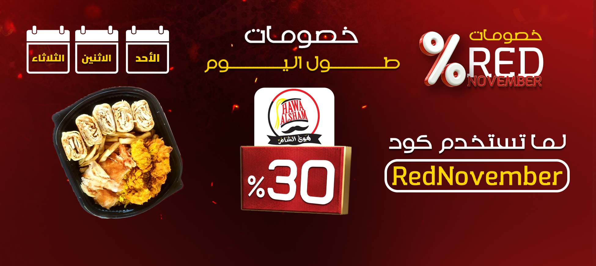 #خصومات تصل لـ 40% فـ #بنها 🥳 علشان احنا داخلين نوفمبر بشكل مختلف 🔥 عاملين لكم الـ Red November ❤️🔥 طول الايام (الأحد - الاثنين - الثلاثاء) خصم 30% من هوى الشام استخدم كود الخصم " RedNovember" 🎁 الخصومات بدأت… وإنت لسه بتتفرج ؟ الحق عروض سيتي اب ومتفكرش كتير 😉