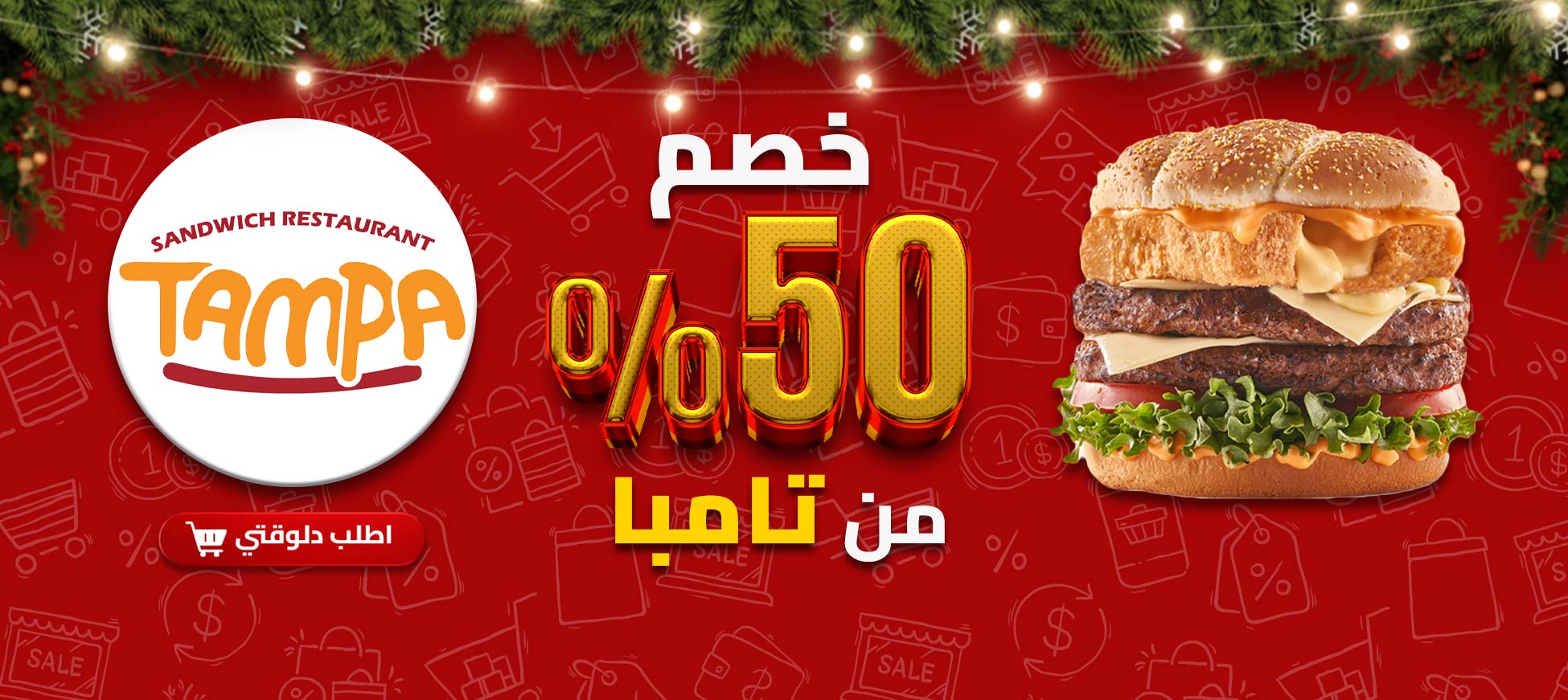 تامبا قرر يدلعك وعملك خصم 50٪ 🔥 العرض متاح على سندوتشات : 🍗 تشكن: ( فريدي - باتريوت - اورلاندو - سبايسي رويال ) . 🍔 بيف: ( بابلو - كلاسيكو - رودهاوس ) 📌 العرض متاح صالة وتيك اواي وخدمة التوصيل ( دلڤري ). 📅 العرض متاح يوم 30 و 31 ديسمبر الحق العرض قبل ما يخلص 😎