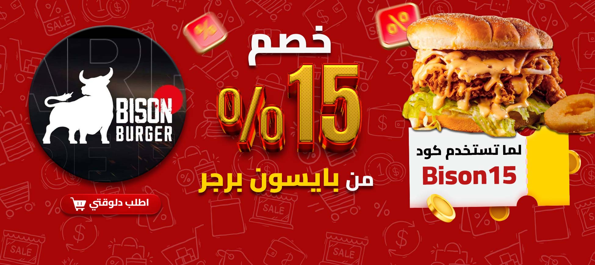 #خصم 15% ع منيو #بايسون_برجر كله 🤯🔥 لما تستخدم كود الخصم " Bison15 " 🎁 ودي دعوة رسمية تدلع نفسك بيها ع الاخر 🍔😋 اللحم طري، العيش فريش، والصوصات؟ بتدخل القلب من غير استئذان ❤️🔥 جاهز تبسط بطنك؟ اطلب دلوقتي وخلي بايسون يحلي يومك ✨🍔🐃