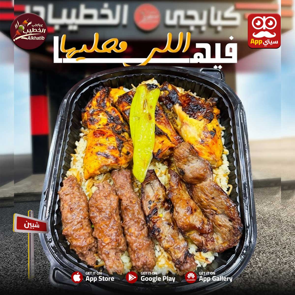 لو محتار تتغدى ايه🤔 اطلب وجبات #الخطيب دايمًا في الضمان 🫣 فـ #شبين ع ابلكيشن #سيتي_اب 📱💎 فيها كل المشويات اللي بتحبها على مزاجك😋 مشويات متظبطة، طعم مظبوط، وخلطة تخليك تطلب وانت مطمن 😋🥩