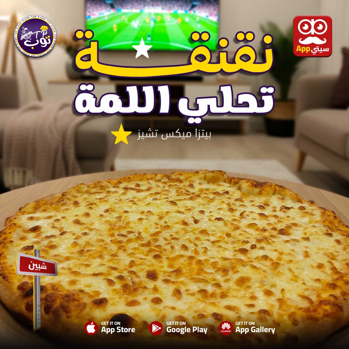 لمة من غير ميكس تشيز؟ لا طبعًا 😌 جبنة دايبة تدوب في حبها من #بيتزا_توب فـ #شبين ع ابلكيشن #سيتي_اب 📱💎 طعم يخليك تعيد الطلب تاني ويخلّي اللمة أطول وأحلى 😍🔥 اطلبها دلوقتي وخلي الجبنة هي اللي تتكلم 🧀👑