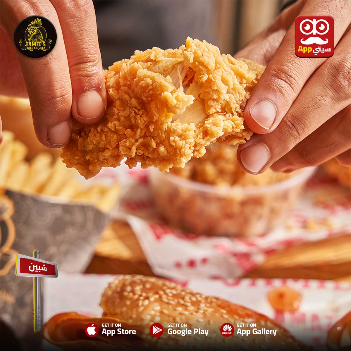 جبتوا آخركوا ولا لسه؟🔥 #جيمس معروف إنه زعيم الفرايد تشيكن 👑🍗 في #شبين على أبلكيشن #سيتي_اب 📱💎 طعم يفرق وقرمشة ما بتتنساش 😍🔥 اطلب دلوقتي واستمتع بالطعم 😋🍗