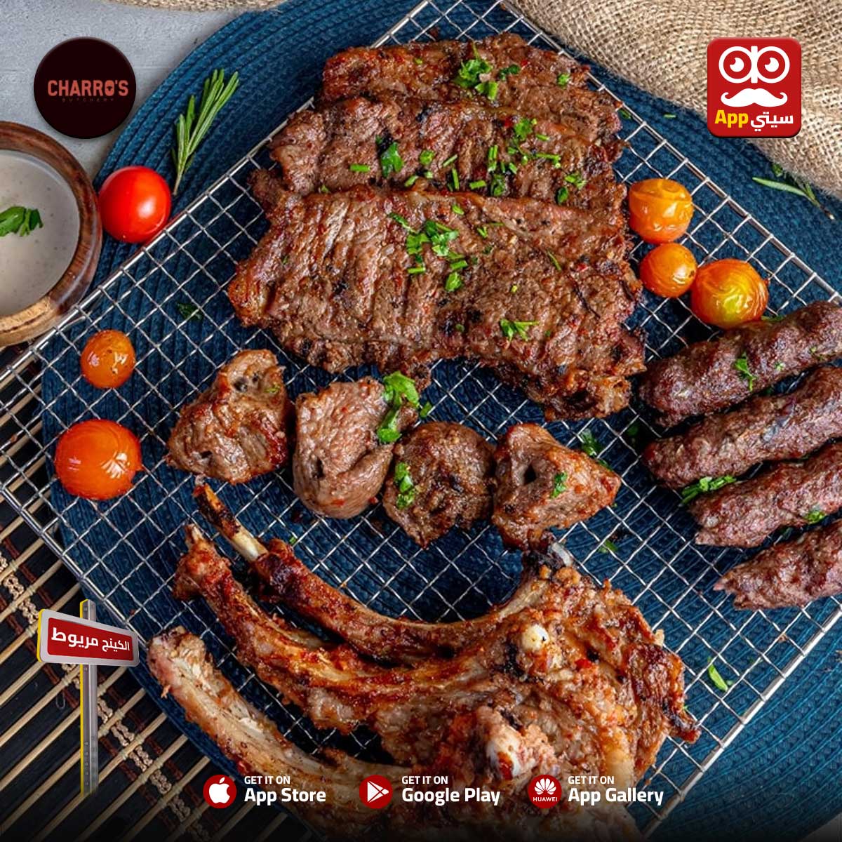 مين يقدر يقاوم ريحة المشاوي على الفحم؟ 😋 تتبيلة سرية وطعم يجنن كل ده في Charros# فـ #كينج_مريوط على أبلكيشن #سيتي_اب 📱 من الكباب والكفتة للستيك الجوسي 🔥 الريحة هتوصل لقلبك قبل مـ الطعم يوصلك 🤍 ولو مزاجك مشويات، استعد لتجربة غير 🔥🫵