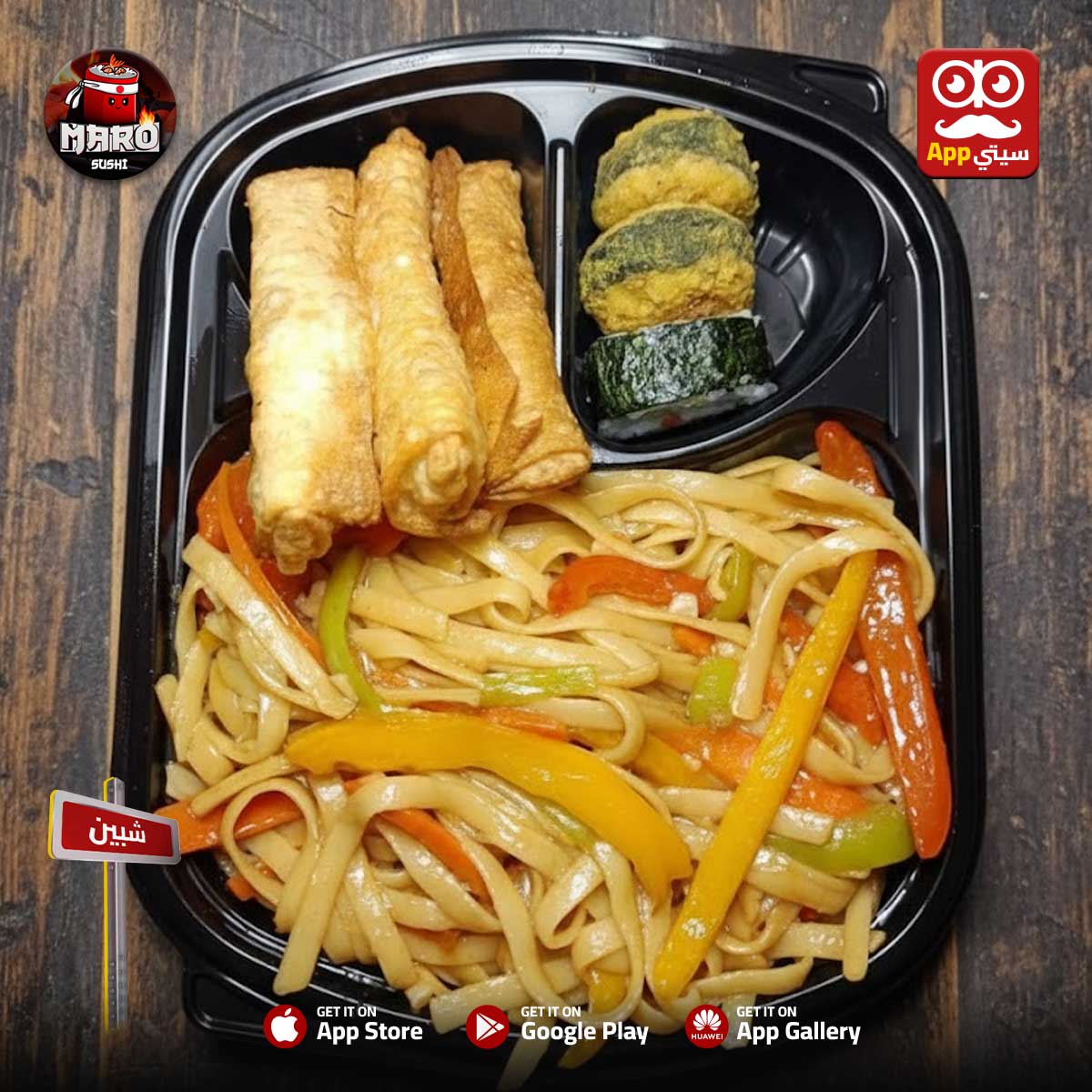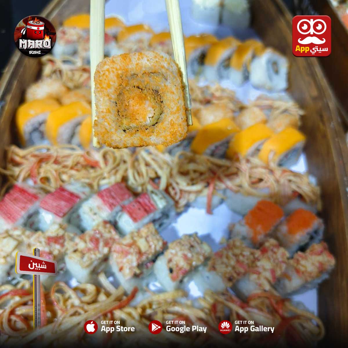 عالم السوشي كله عند #مارو_سوشي 😋♥️🔥 فـ #شبين على أبلكيشن #سيتي_اب 📱📍 سوشي بأشكال وألوان مختلفة 🍣 نودلز على مزاجك وبنكهات تحبها 🍜