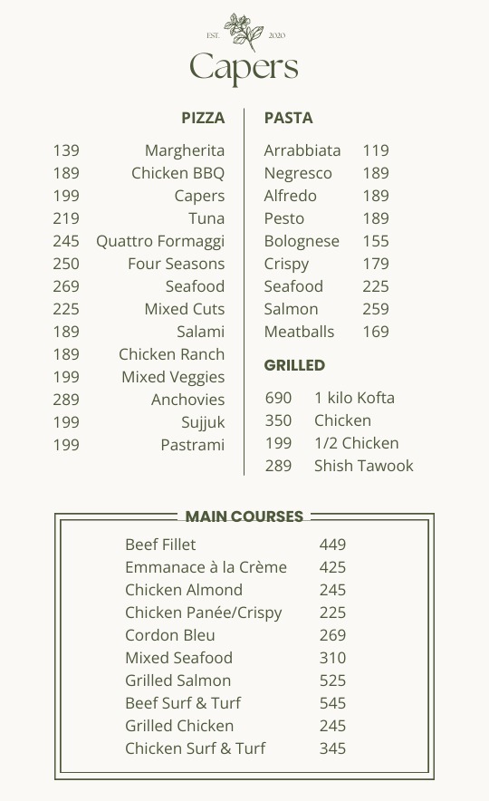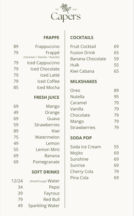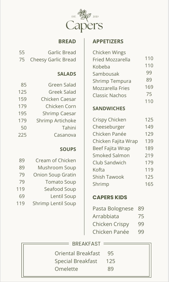 خصم 15% مستمر على كل منيو Capers بكود capers15 🎉