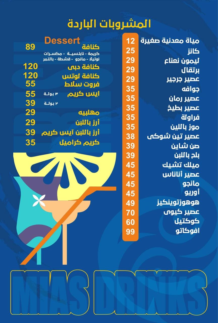 شوف منيو مشروبات مياس الجديد وروحو فرع الفلل اكبر مطعم سمك في بنها 😍